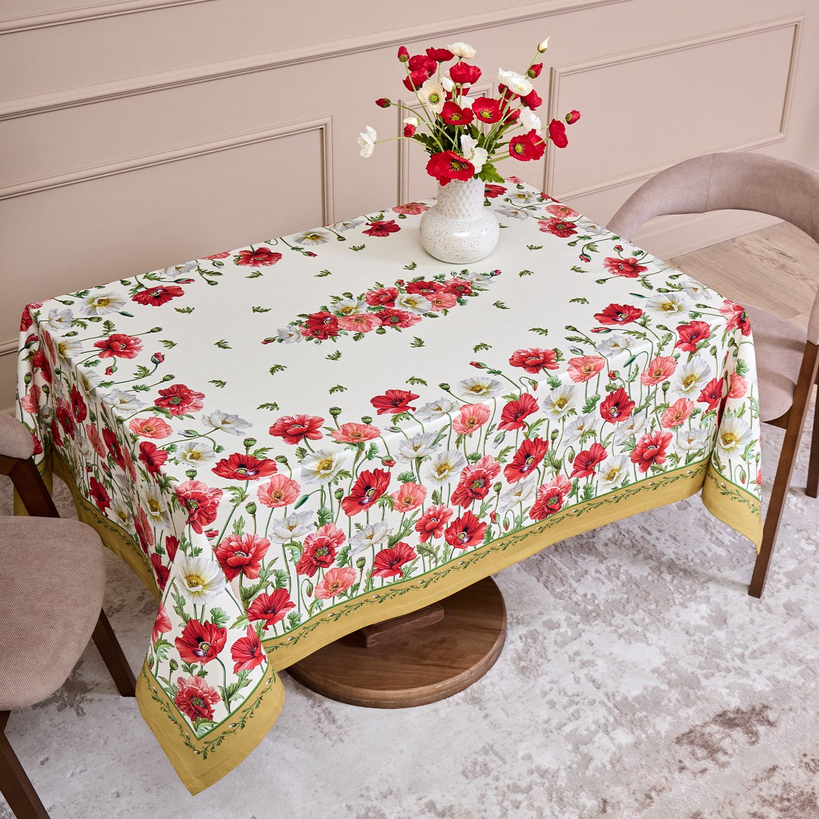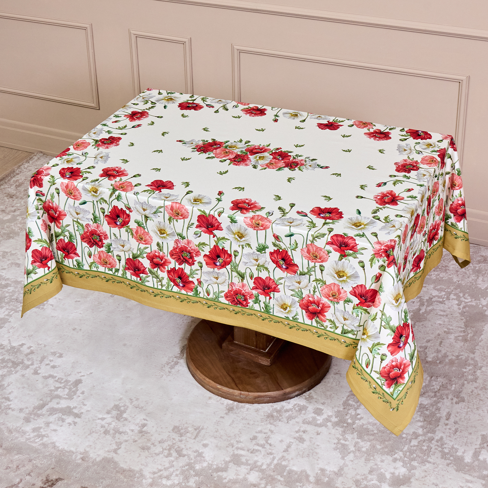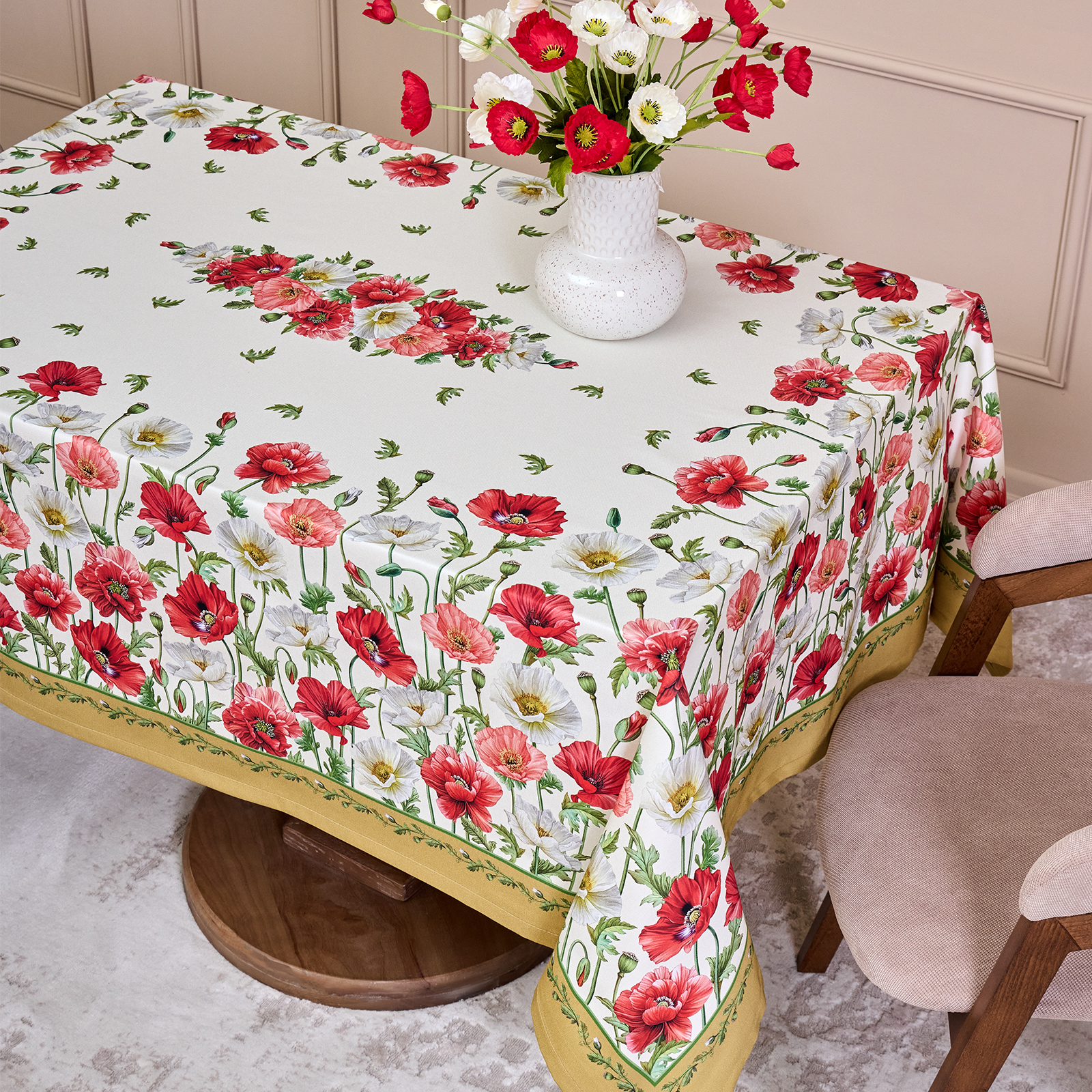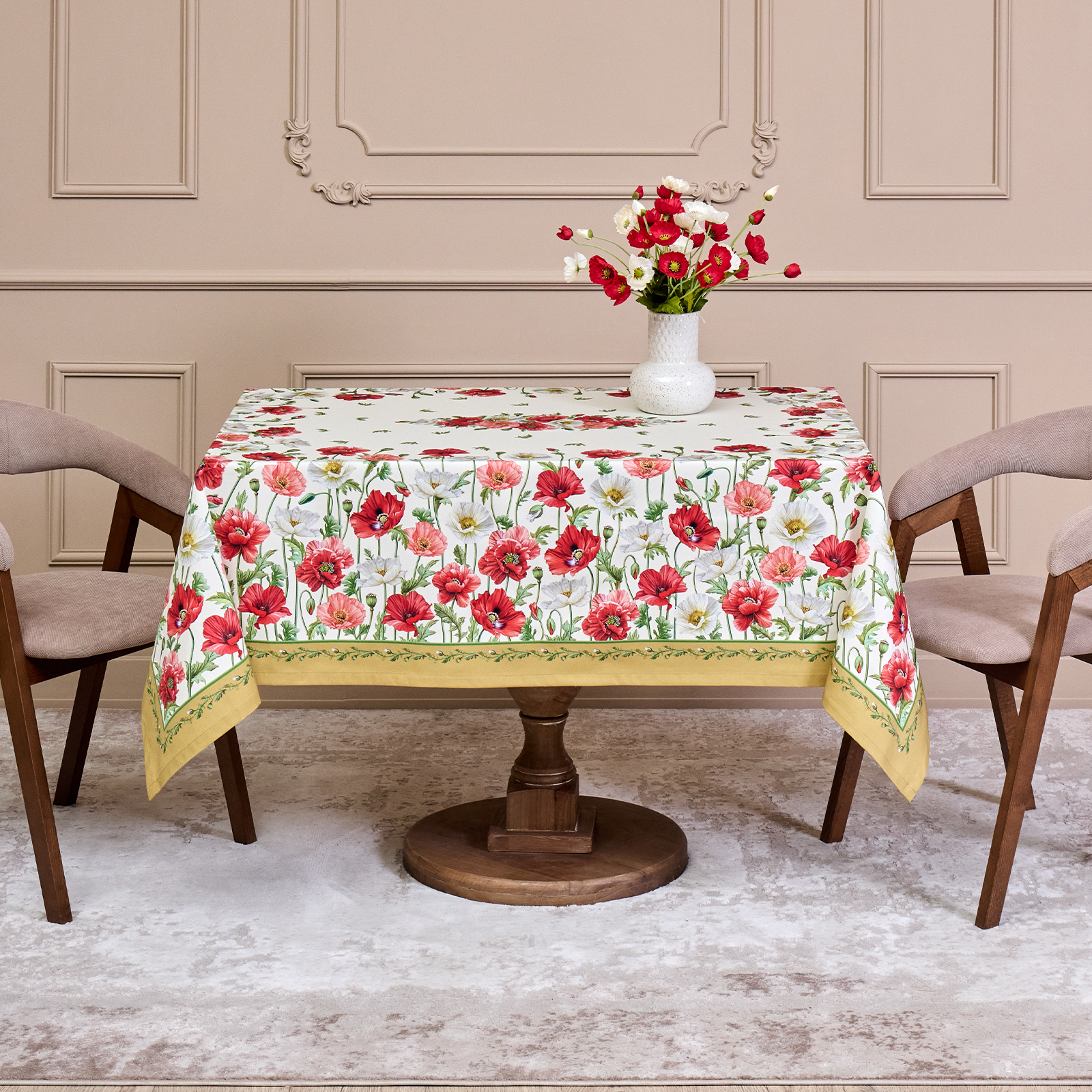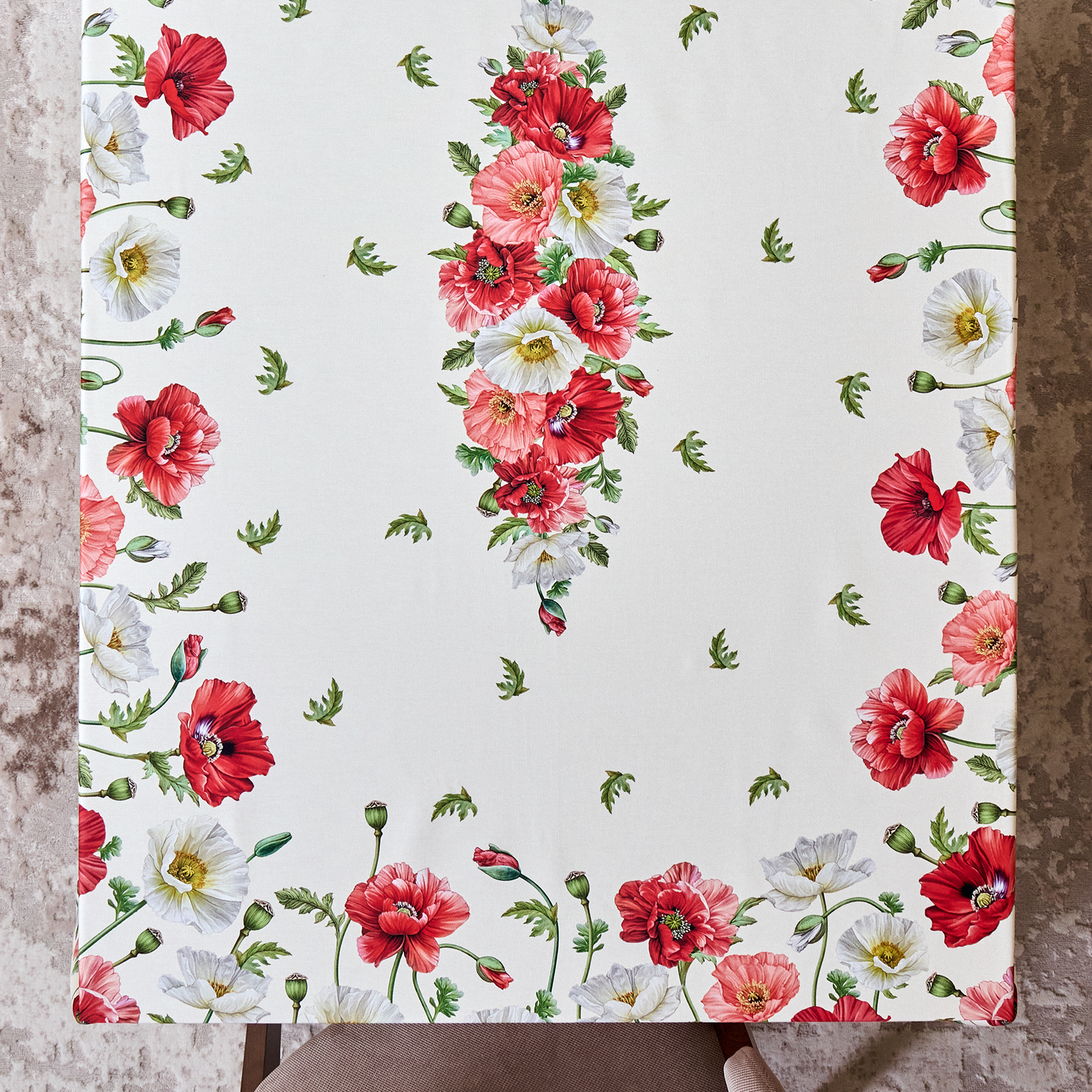 СКАТЕРТЬ "МАКИ" 140Х180 ,КРЕМОВЫЙ, 100% ХЛОПОК С ПРОПИТКОЙ,ТВИЛ