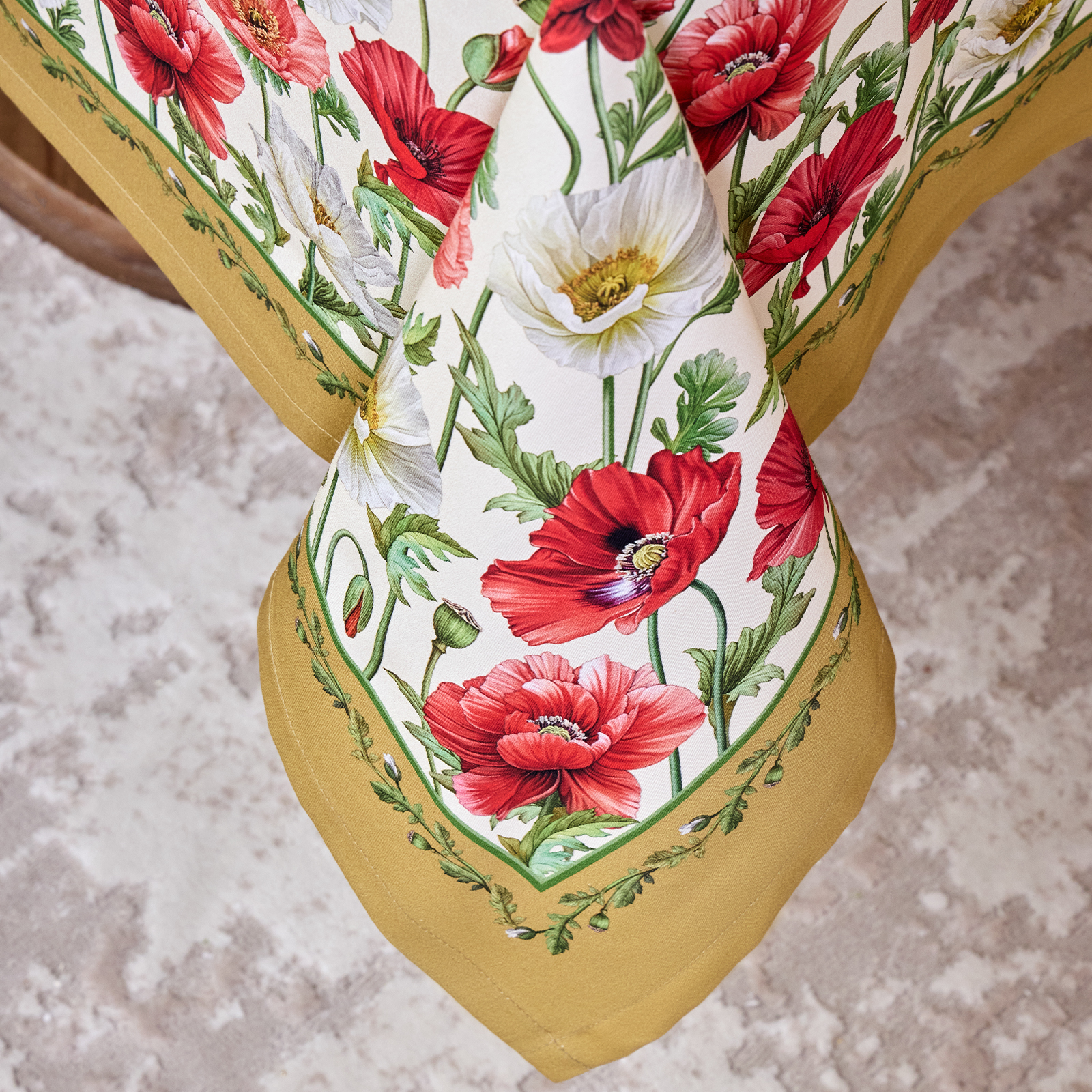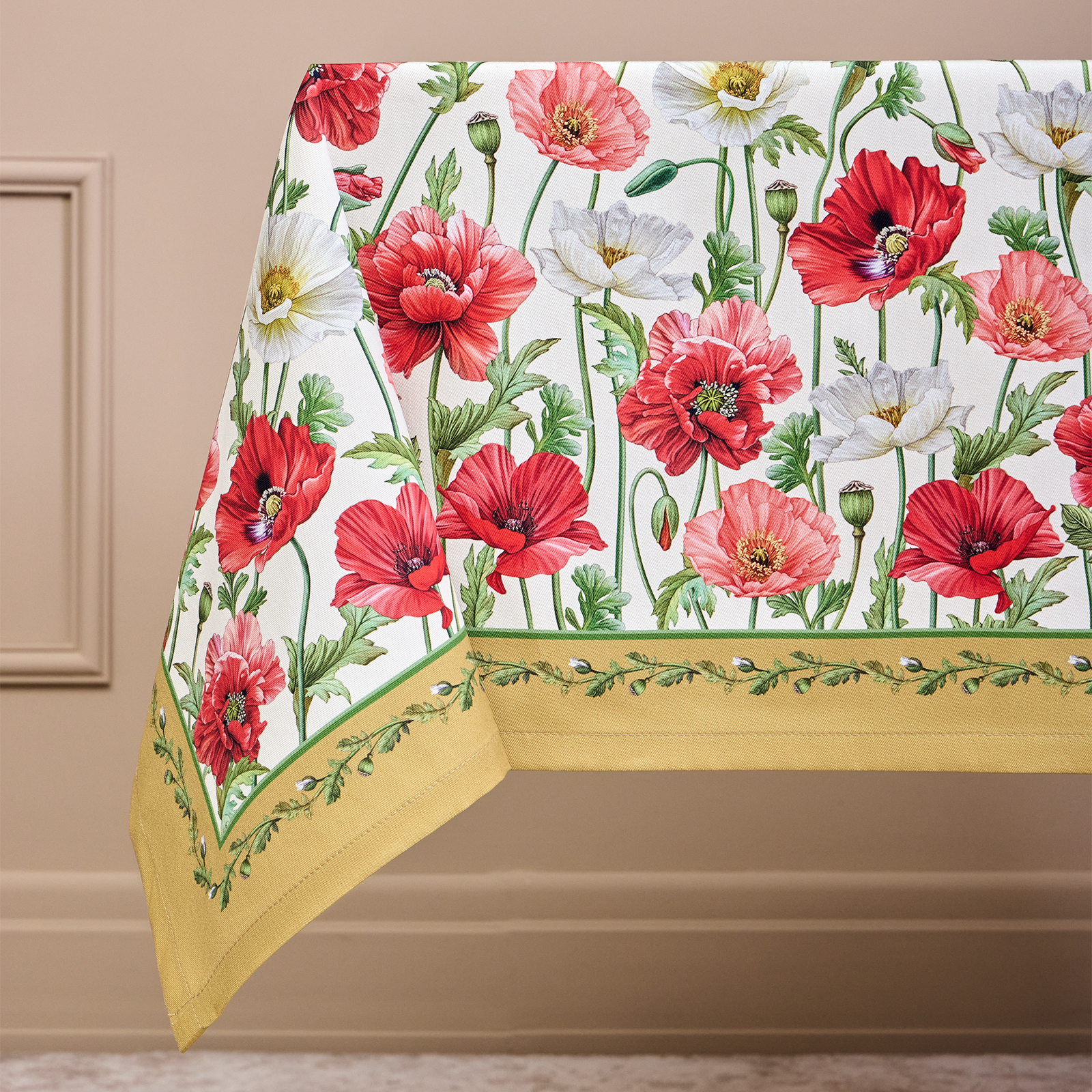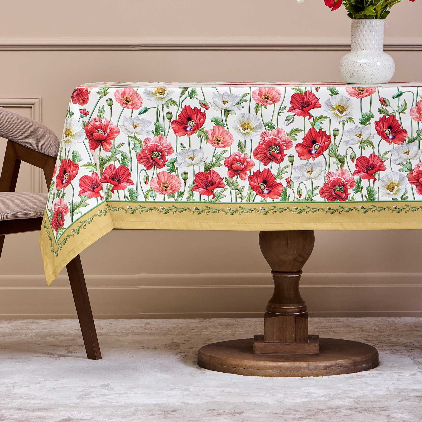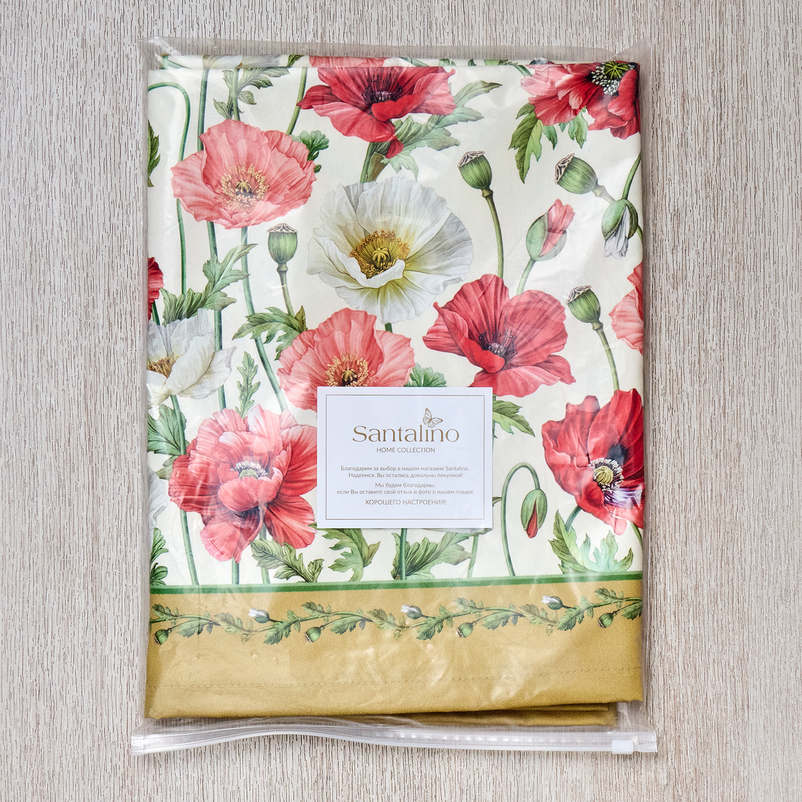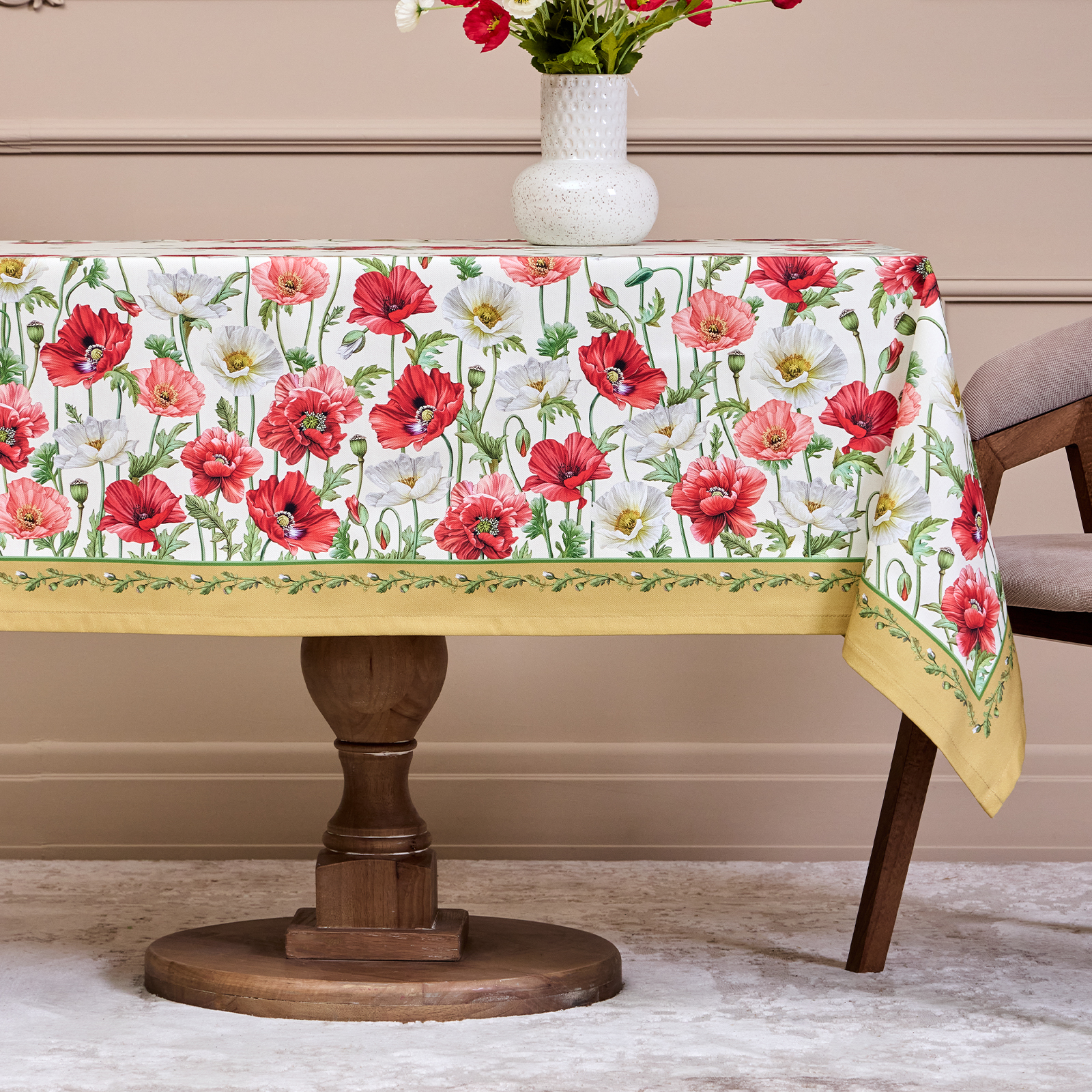 СКАТЕРТЬ "МАКИ" 140Х180 ,КРЕМОВЫЙ, 100% ХЛОПОК С ПРОПИТКОЙ,ТВИЛ
