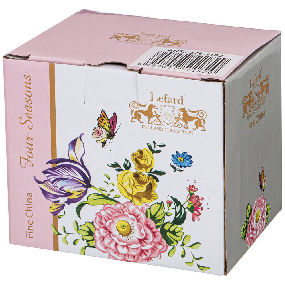 ТМ LEFARD коллекция "Времена года" выполнена из тонкостенного фарфора. Стильная форма, вместительный объем, модное сочетание пастельных тонов и цветочной деколи, отделка золотом - все это делает коллекцию неотразимой и очень привлекательной. Это прекрасный подарок. Нельзя ставить в микроволновую печь, не рекомендуется мыть в посудомоечной машине.