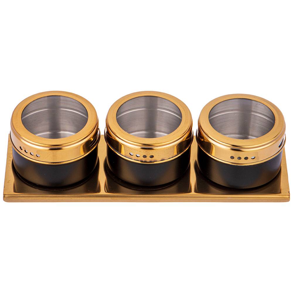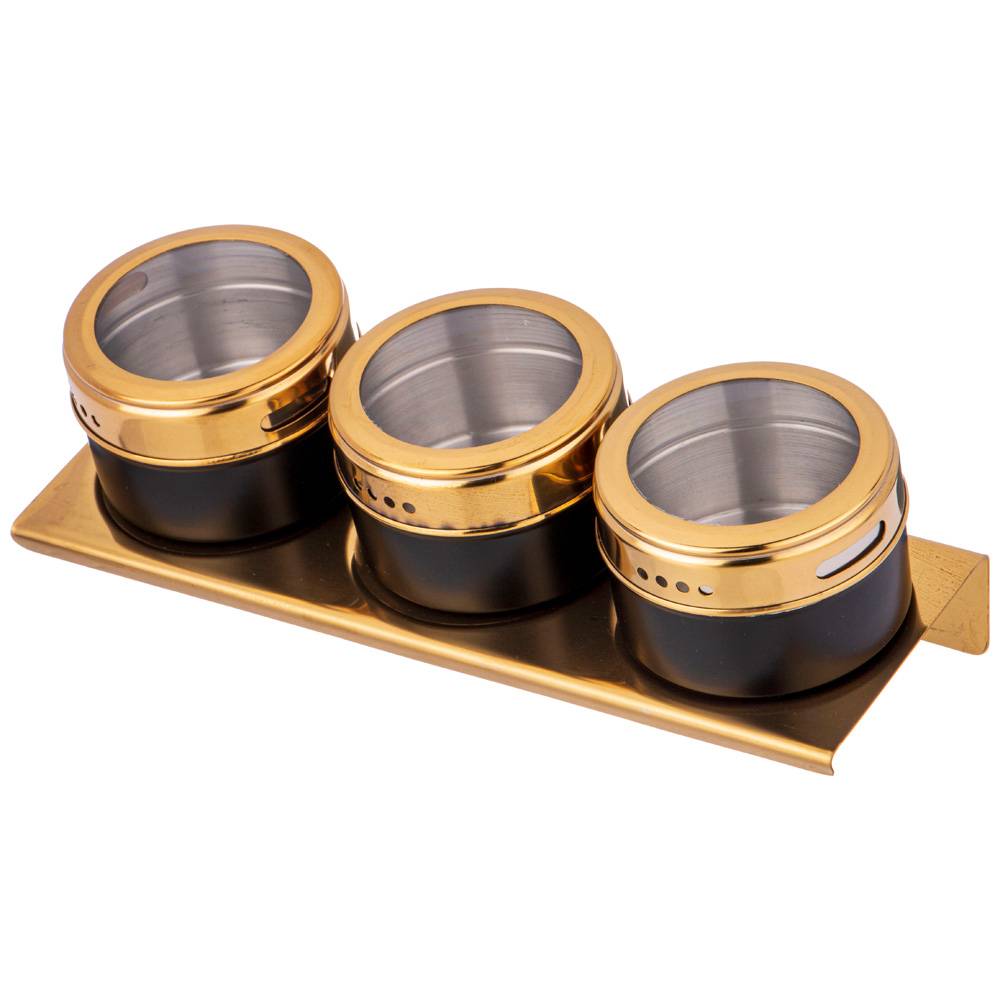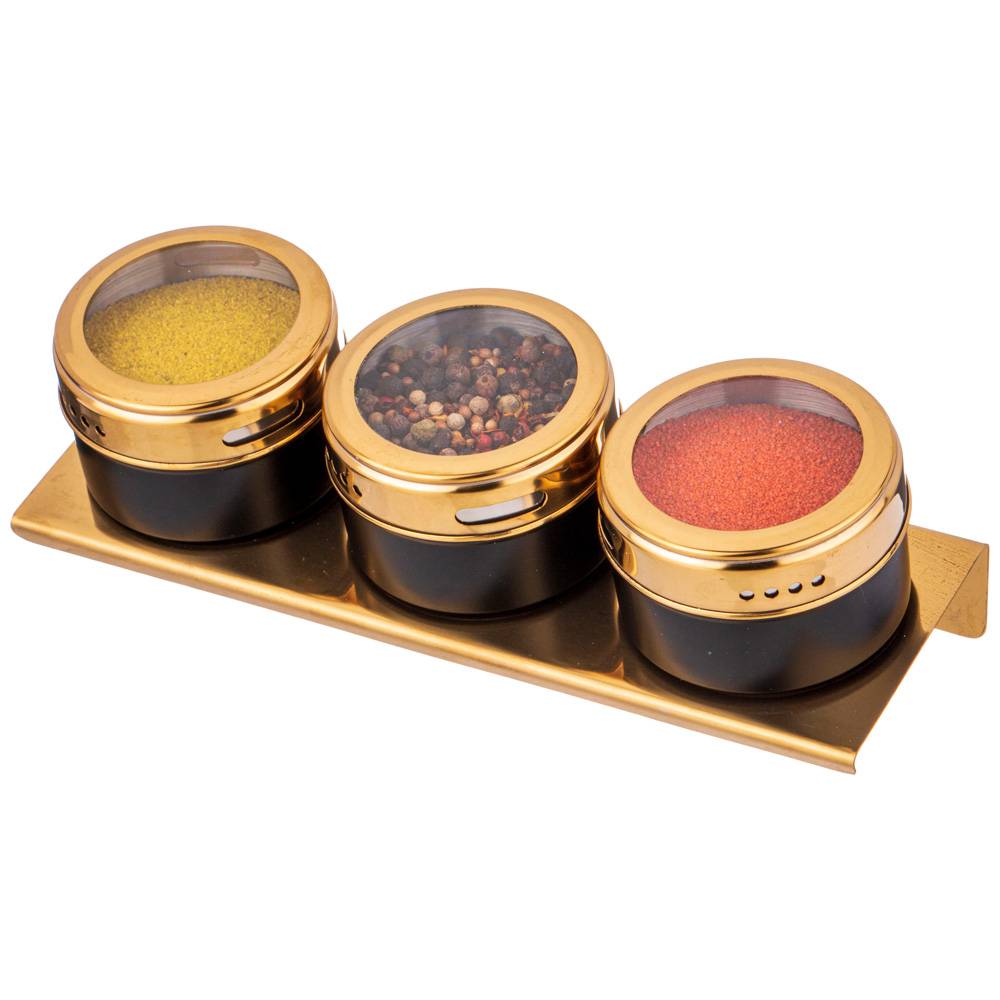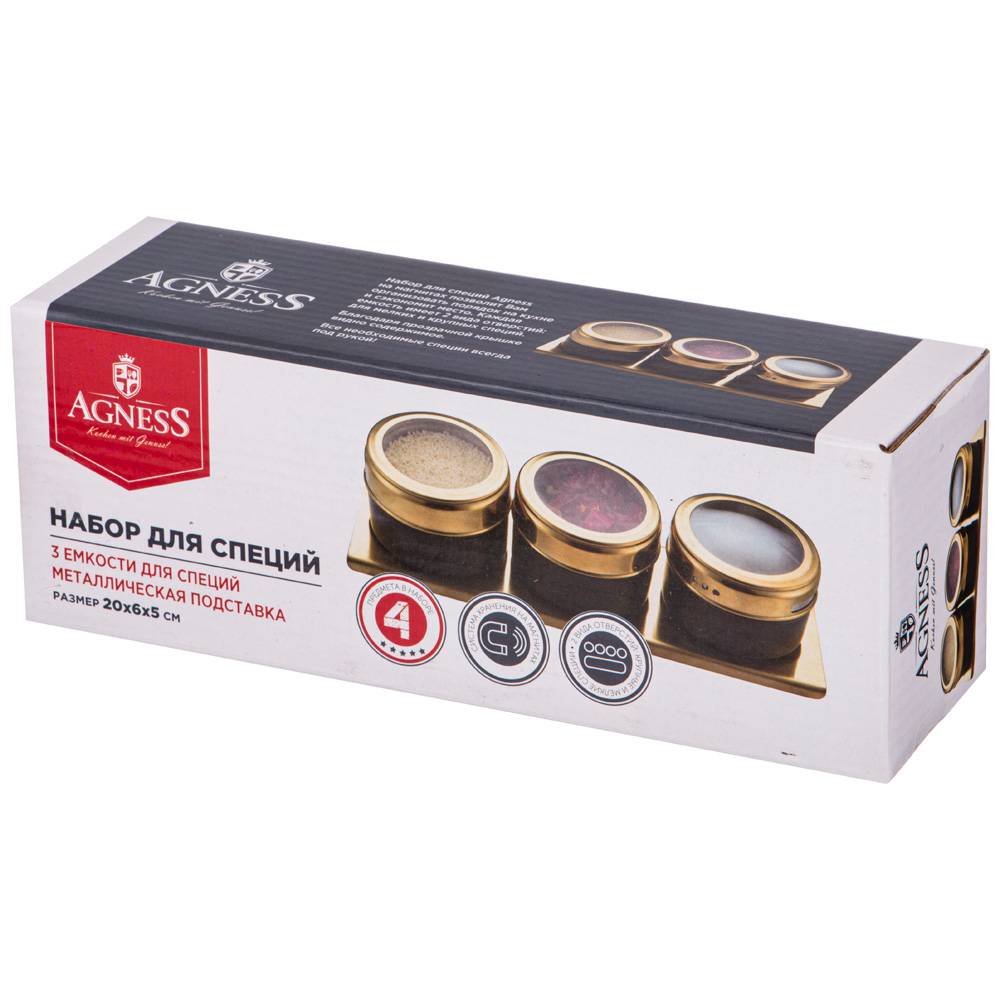 НАБОР ДЛЯ СПЕЦИЙ AGNESS 4 ПР."ЧЕРНОЕ ЗОЛОТО" НА МАГНИТАХ, В Т.Ч. МЕТАЛ.ПОДСТАВКА 20*6*5 СМ