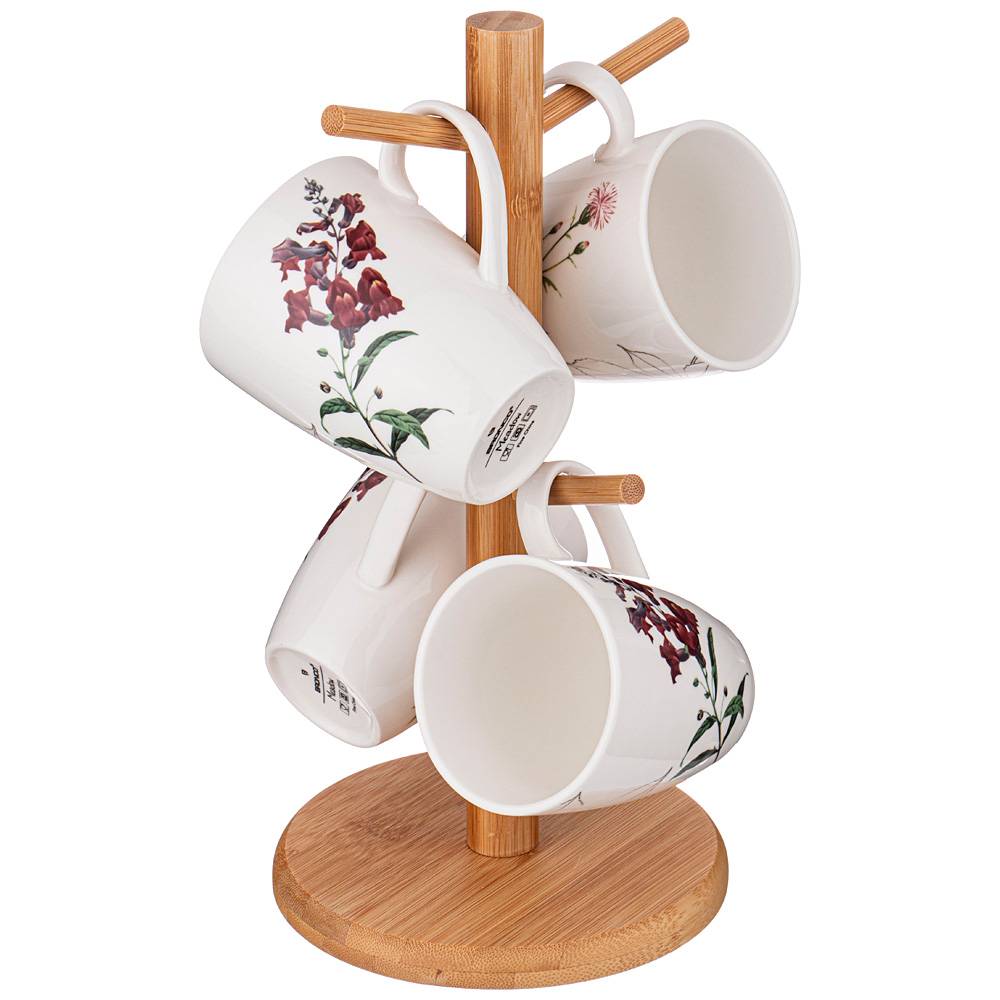 НАБОР ИЗ 4 КРУЖЕК BRONCO "MEADOW" НА ДЕРЕВЯННОЙ ПОДСТАВКЕ 300 МЛ (КОР=12НАБ.)