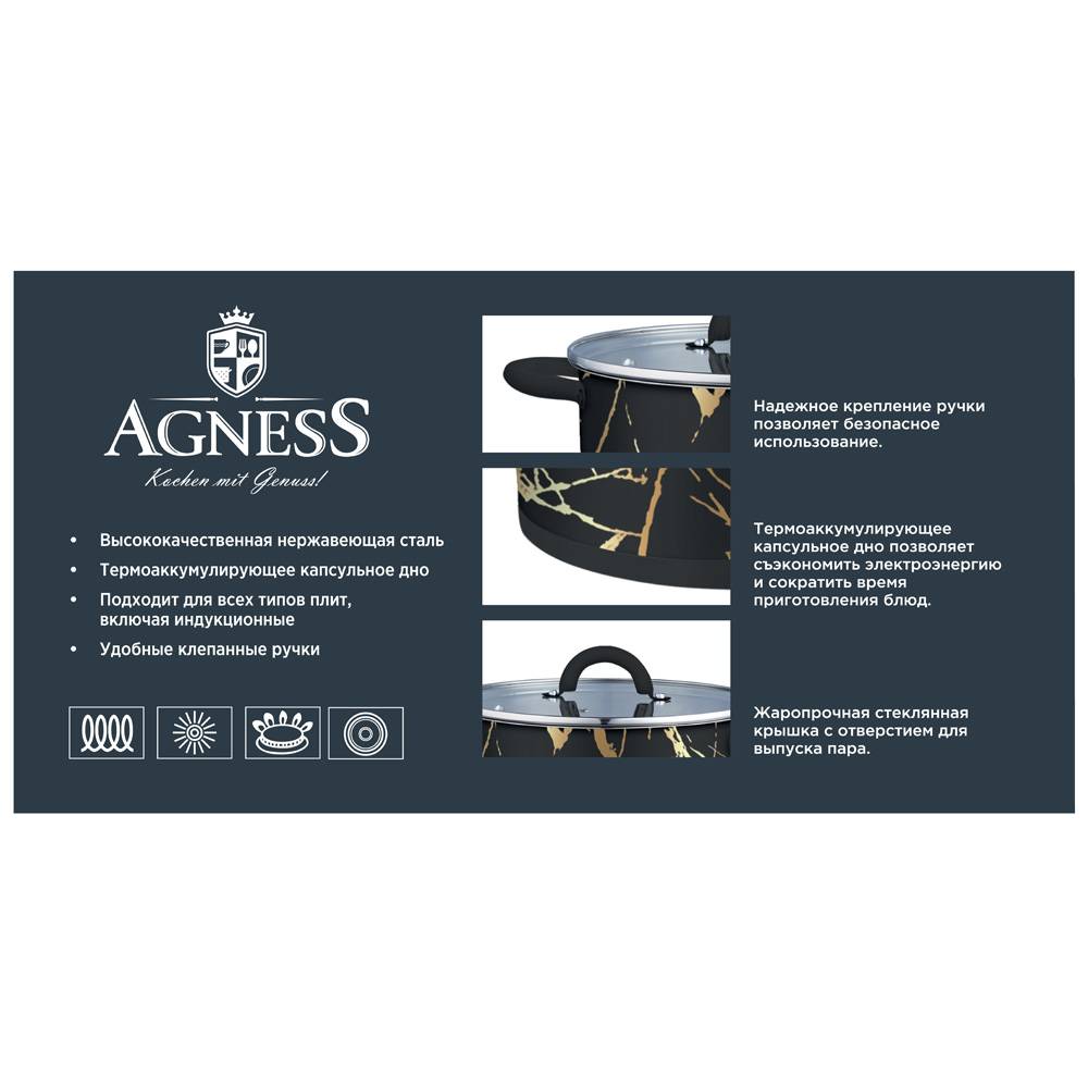 КАСТРЮЛЯ AGNESS "МАКИ" СО СТЕКЛЯННОЙ КРЫШКОЙ, НЕРЖ.СТАЛЬ, 3,1Л 20Х11 СМ
