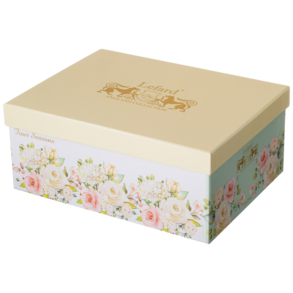 ТМ LEFARD коллекция "Времена года" выполнена из тонкостенного фарфора. Стильная форма, вместительный объем, модное сочетание пастельных тонов и цветочной деколи, отделка золотом - все это делает коллекцию неотразимой и очень привлекательной. Форма и цвет посуды способны оказать магическое действие на всех, кто находится за столом. Светлый зеленый – символ обновления, нежный розовый – период любви и романтики, нежный желтый – время собирать урожай и тепло, прохладный голубой – время собираться с силами. Т.е. «Времена года» могут согреть душу, создать тепло и уют в доме. Это прекрасный подарок. Нельзя ставить в микроволновую печь, не рекомендуется мыть в посудомоечной машине.