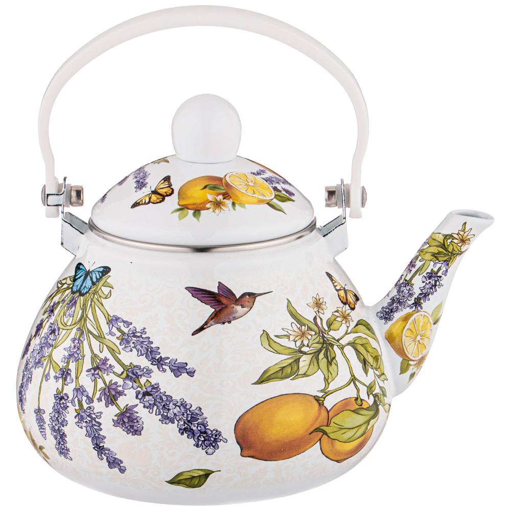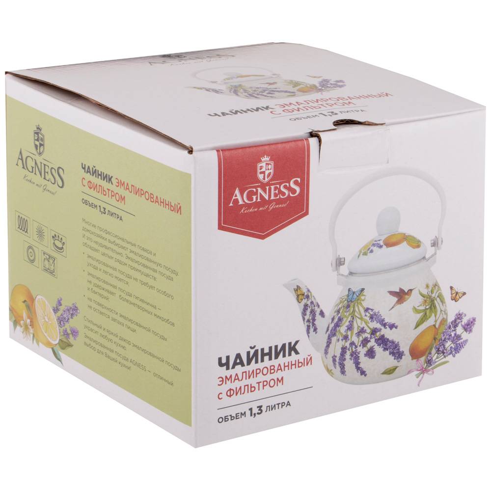 ЧАЙНИК AGNESS ЭМАЛИРОВАННЫЙ СО СЪЕМНЫМ ФИЛЬТРОМ ИЗ НЖС, СЕРИЯ"ПРОВАНС ЛИМОНЫ", 1,3 Л