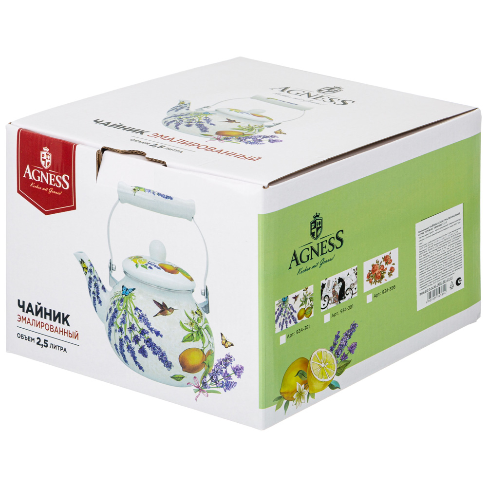ЧАЙНИК AGNESS ЭМАЛИРОВАННЫЙ, СЕРИЯ "ПРОВАНС ЛИМОНЫ", 2,5 Л