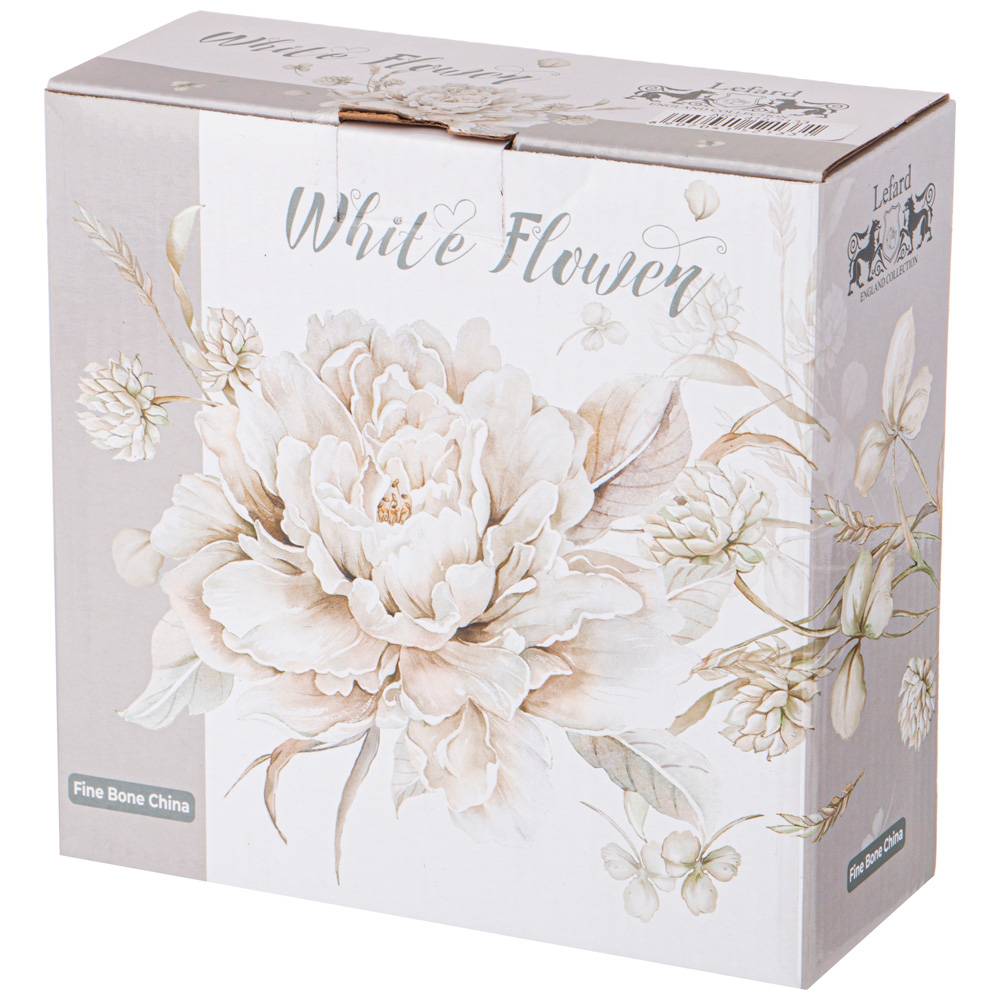 ТМ Lefard - эксклюзивная коллекция "WHITE FLOWER" из белоснежного костяного фарфора. Современные формы, удобные ручки, оптимальные объемы. Белая, серая и голубая цветовые гаммы прекрасно сочетаются и дополняют друг друга. Роскошный белый цветок завораживает красотой и объемом. Красочная индивидуальная упаковка. Это прекрасный подарок для себя и своих близких! Посуда прошла сертификацию. Безопасно для контакта с пищевыми продуктами. Мыть мягкими моющими неабразивными средствами. Можно смело использовать в микроволновой печи, мыть в посудомоечной машине.