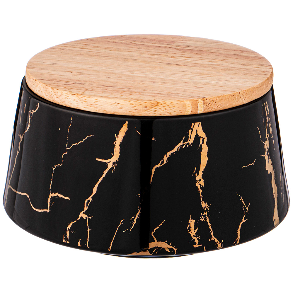 БАНКА С ДЕРЕВ.КРЫШКОЙ LEFARD "FANTASY" 13,5*7,5 СМ 600 МЛ ЧЕРНАЯ (КОР=24ШТ.)