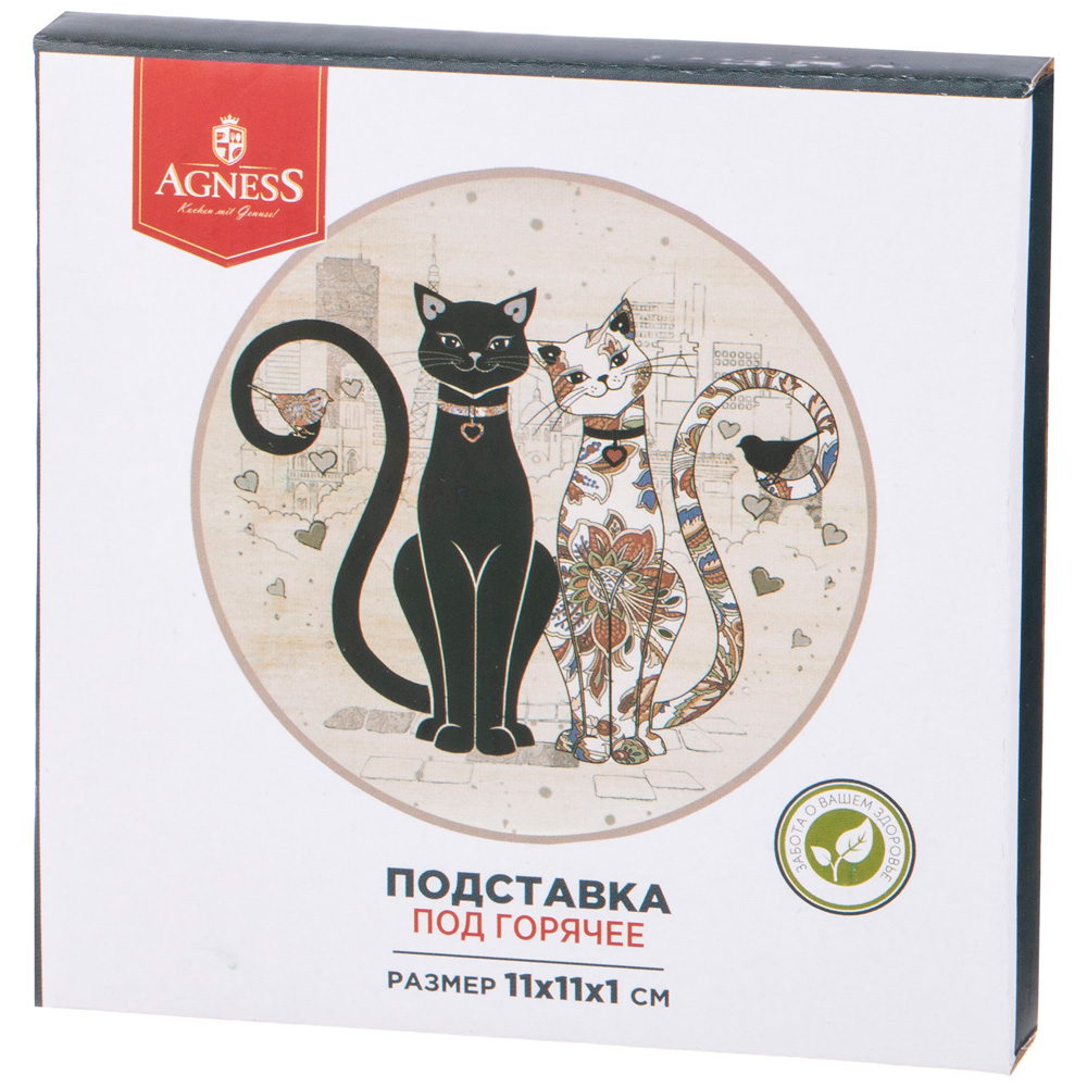 ПОДСТАВКА ПОД ГОРЯЧЕЕ AGNESS "ПАРИЖСКИЕ КОТЫ" 11*1 СМ (КОР=72ШТ.)