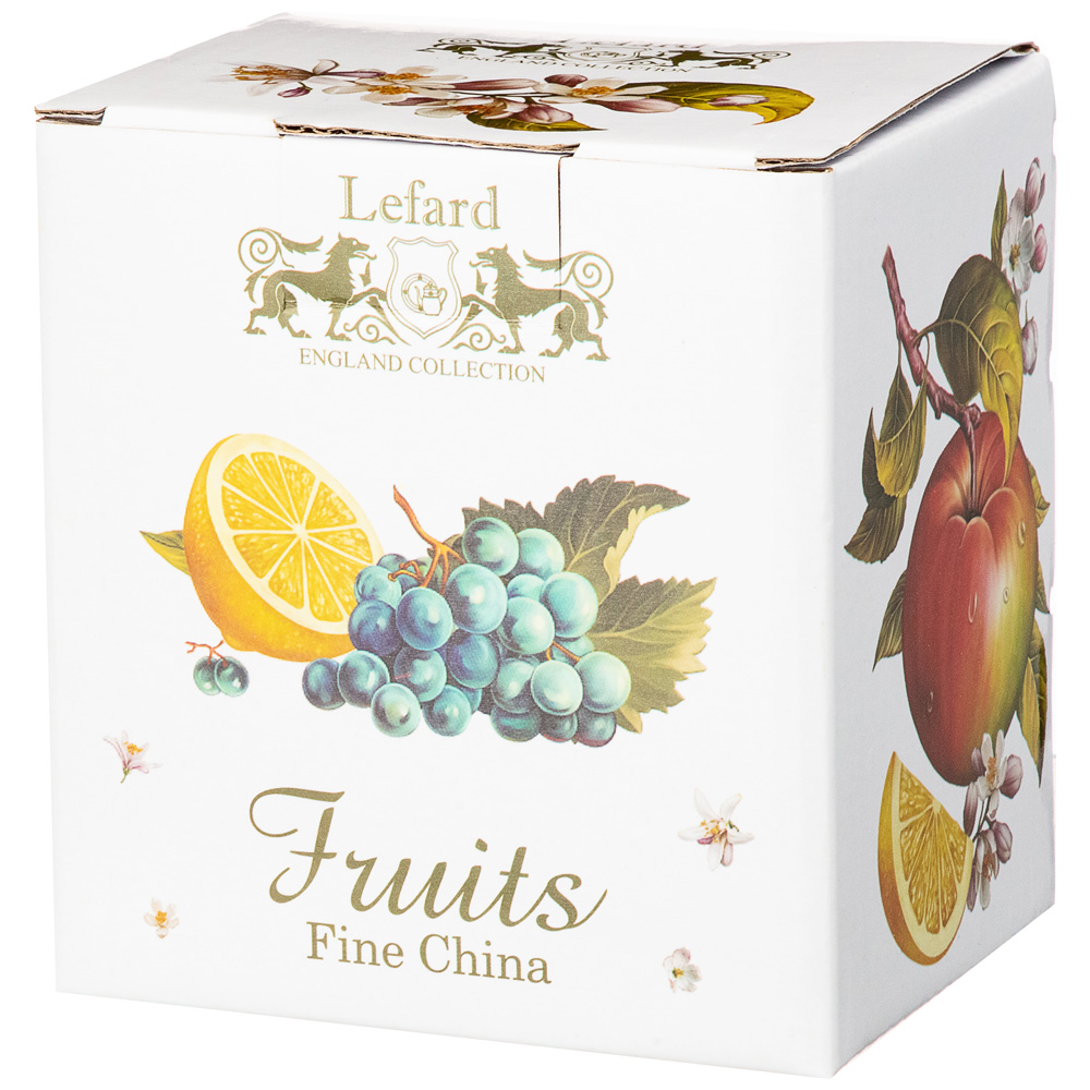 ТМ Lefard коллекция "Фрукты" - фруктовое ассорти на посуде и предметах сервировки сделает любую кухню уютной, а семейное чаепитие - душевным. Изделия из тонкостенного, высококачественного и костяного фарфора. Удобная форма, красочный дизайн, яркая упаковка. Изделия подходят для ежедневного использования и праздничной сервировки стола. Отличный подарок. Посуда прошла сертификацию. Безопасна для контакта с пищевыми продуктами. Можно смело использовать в микроволновой печи, мыть в посудомоечной машине, ставить в холодильник.