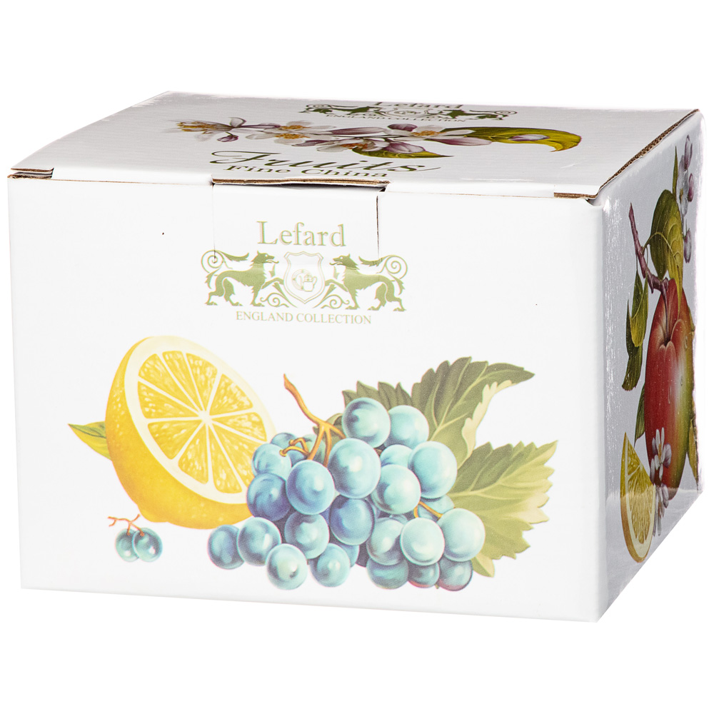 ТМ Lefard коллекция "Фрукты" - фруктовое ассорти на посуде и предметах сервировки сделает любую кухню уютной, а семейное чаепитие - душевным. Изделия из тонкостенного, высококачественного и костяного фарфора. Удобная форма, красочный дизайн, яркая упаковка. Изделия подходят для ежедневного использования и праздничной сервировки стола. Отличный подарок. Посуда прошла сертификацию. Безопасна для контакта с пищевыми продуктами. Можно смело использовать в микроволновой печи, мыть в посудомоечной машине, ставить в холодильник.