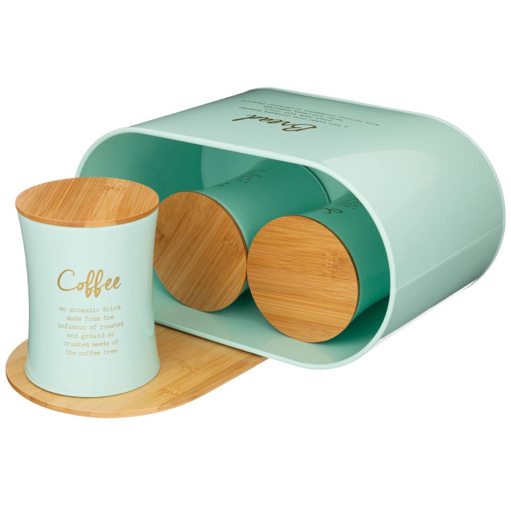 Хлебница и банки для сыпучих продуктов являются частью системы хранения в доме.