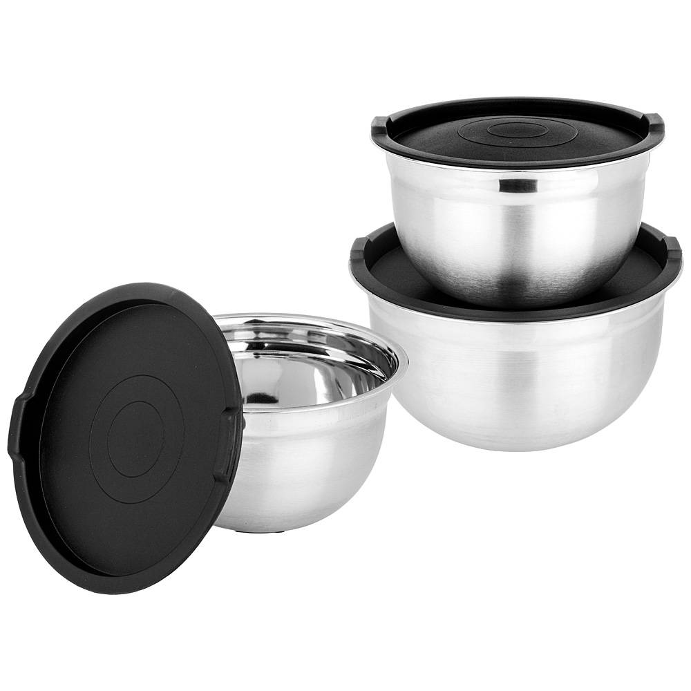 НАБОР МИСОК AGNESS С КРЫШКАМИ, ПРОТИВОСКОЛЬЗЯЩЕЕ ДНО, 6 ПР, 1,3/2,6/4 Л. D=18/22/26 CM
