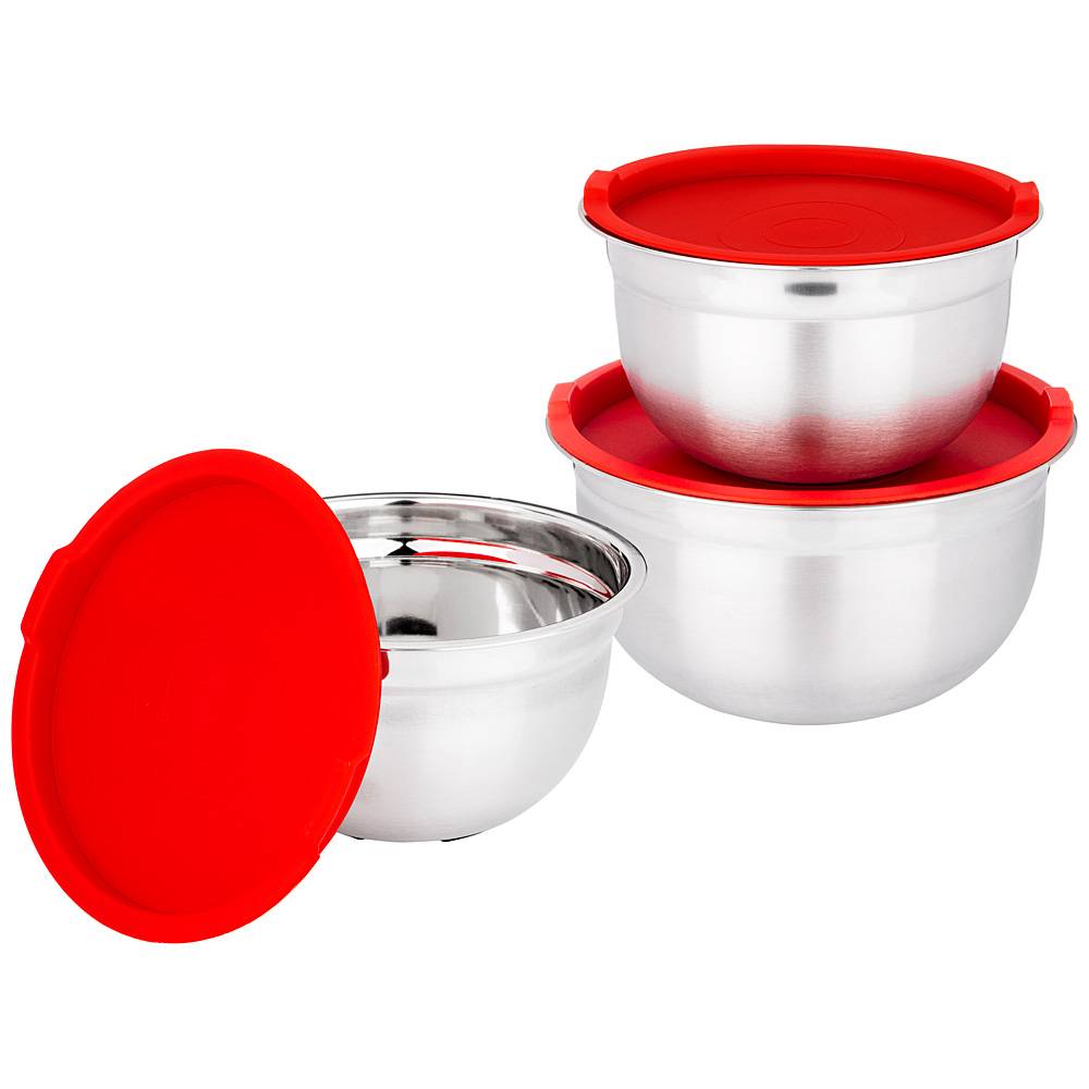 Прочные и компактные миски выполнены из нержавеющей стали, крышки - из полимерных материалов.