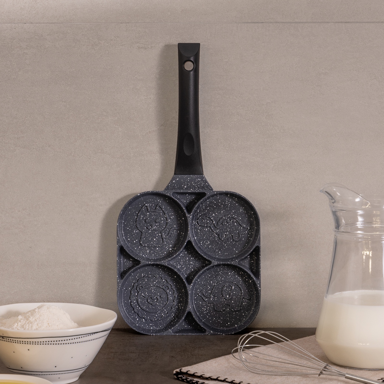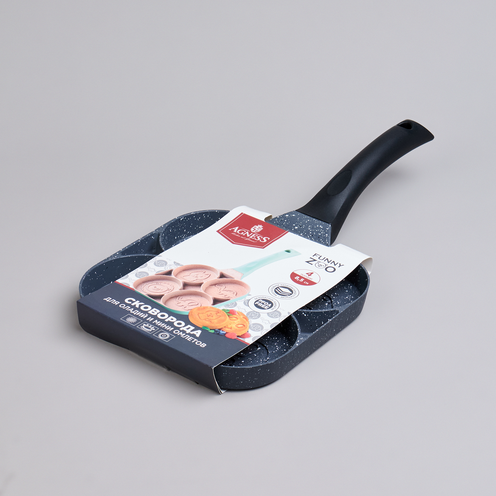 Сковороды AGNESS серии "Funny Zoo" выполнены из литого алюминия. Такая посуда отличается высокой теплопроводностью и устойчивостью к деформациям. Необычный дизайн сковороды позволит приготовить интересные и веселые оладушки и омлеты.