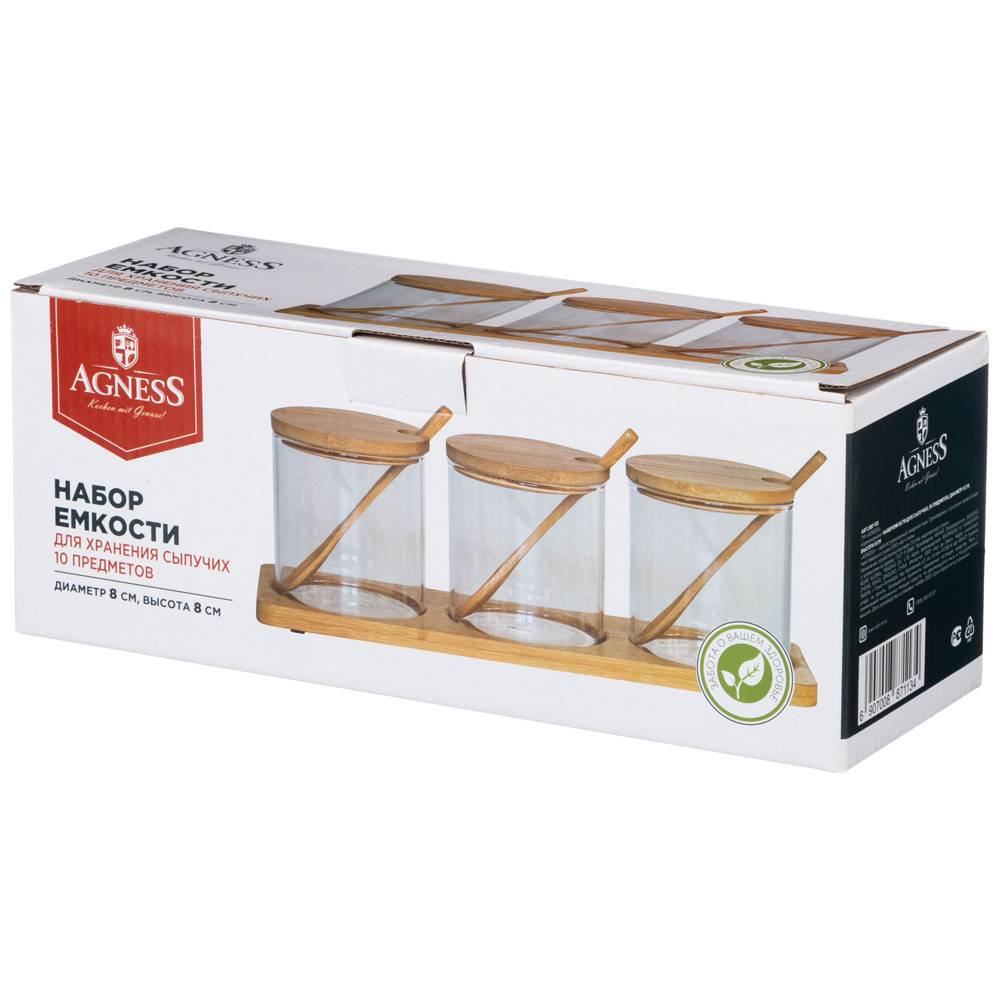 НАБОР ЕМКОСТИ ДЛЯ СЫПУЧИХ AGNESS "NATIVE", 10 ПРЕДМЕТОВ, ДИАМЕТР 8 СМ, ВЫСОТА 8 СМ БОРОСИЛИКАТНОЕ