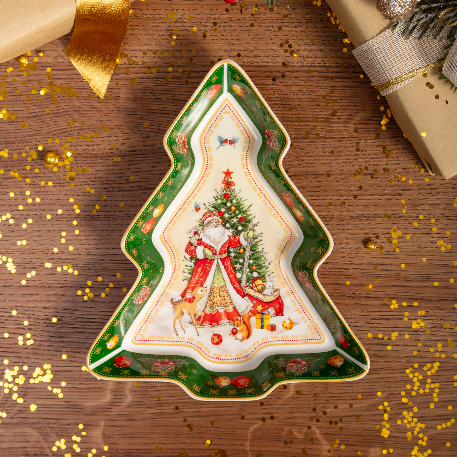 БЛЮДО-ЕЛКА LEFARD "ДЕД МОРОЗ" 25*21*4 СМ ЗЕЛЕНОЕ (КОР=8ШТ.)