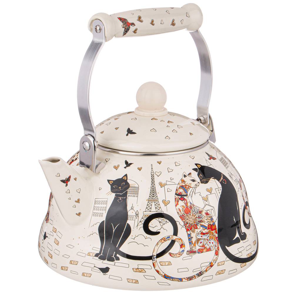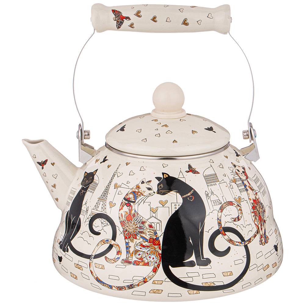ЧАЙНИК AGNESS ЭМАЛИРОВАННЫЙ, 3,0Л, СЕРИЯ "ПАРИЖСКИЕ КОТЫ"