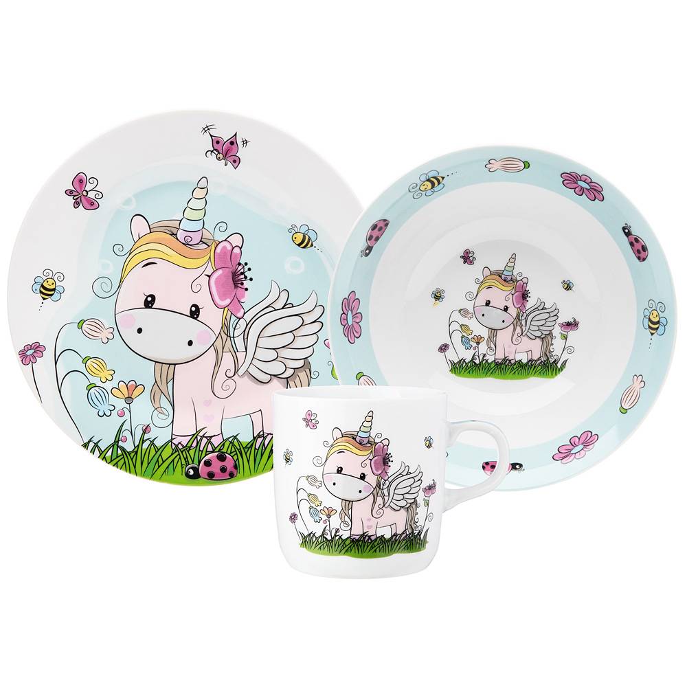 Посуда прошла сертификацию, безопасна для контакта с пищевыми продуктами. Можно ставить в микроволновую печь, мыть в посудомоечной машине. Комплектность: тарелка закусочная -18 см; салатник - 15 см; кружка - 230 мл