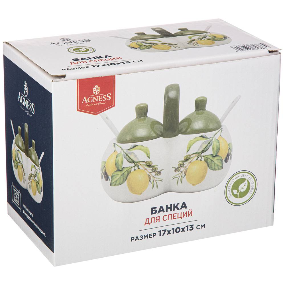 БАНКА 2 СЕКЦИИ AGNESS "ЛЕМОН ТРИ" 17*10*13 СМ / 2х320 МЛ (КОР=24ШТ.)