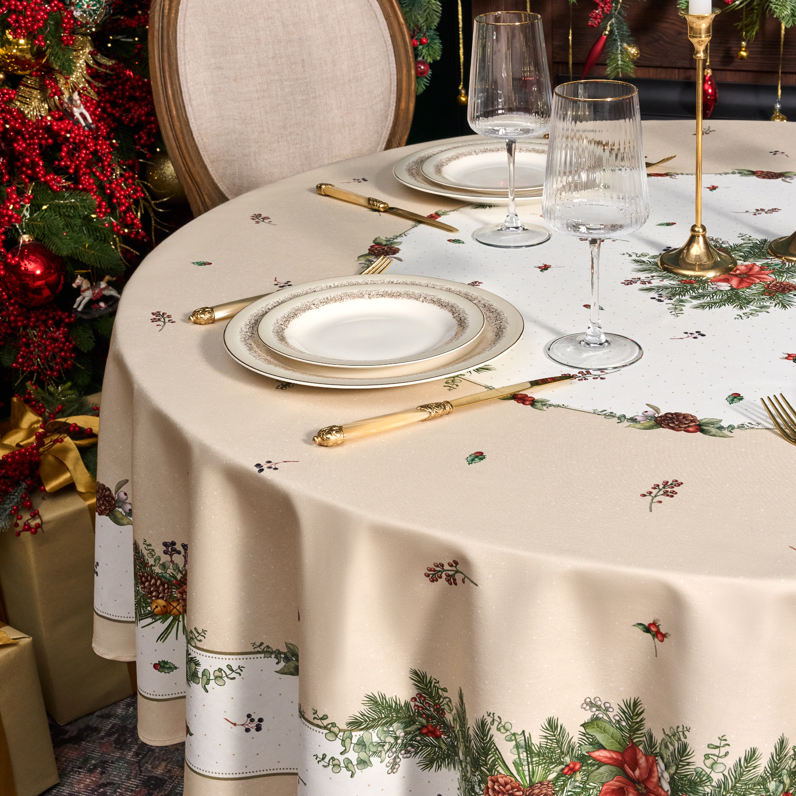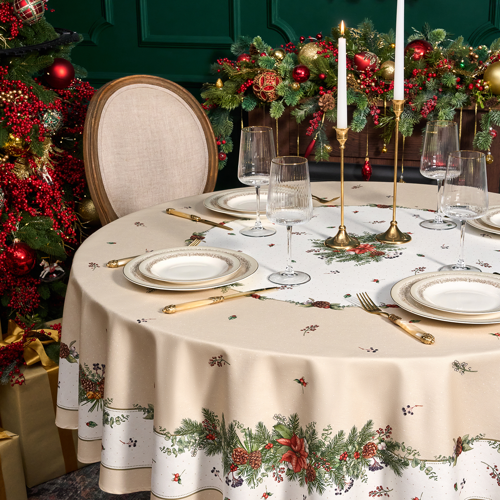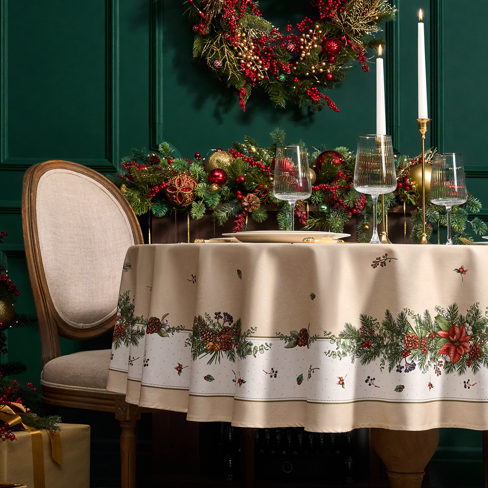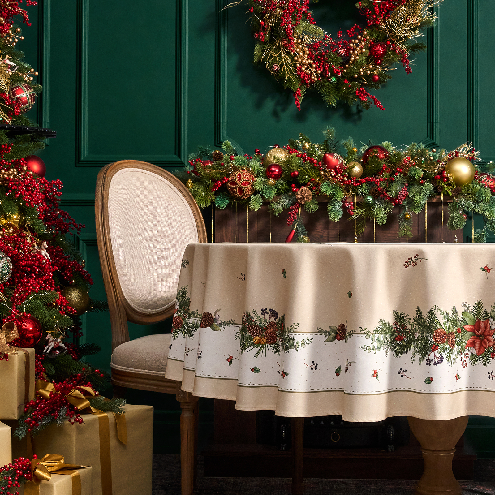 Коллекция Celebration имеет универсальный красивый зимний дизайн с шишками, веточками ели и пуансеттией. Она подойдет как для празднования Нового года и Рождества, так и для повседневного использования и декора, а специальная пропитка избавит вас от хлопот с отстированием пятен после застолья.