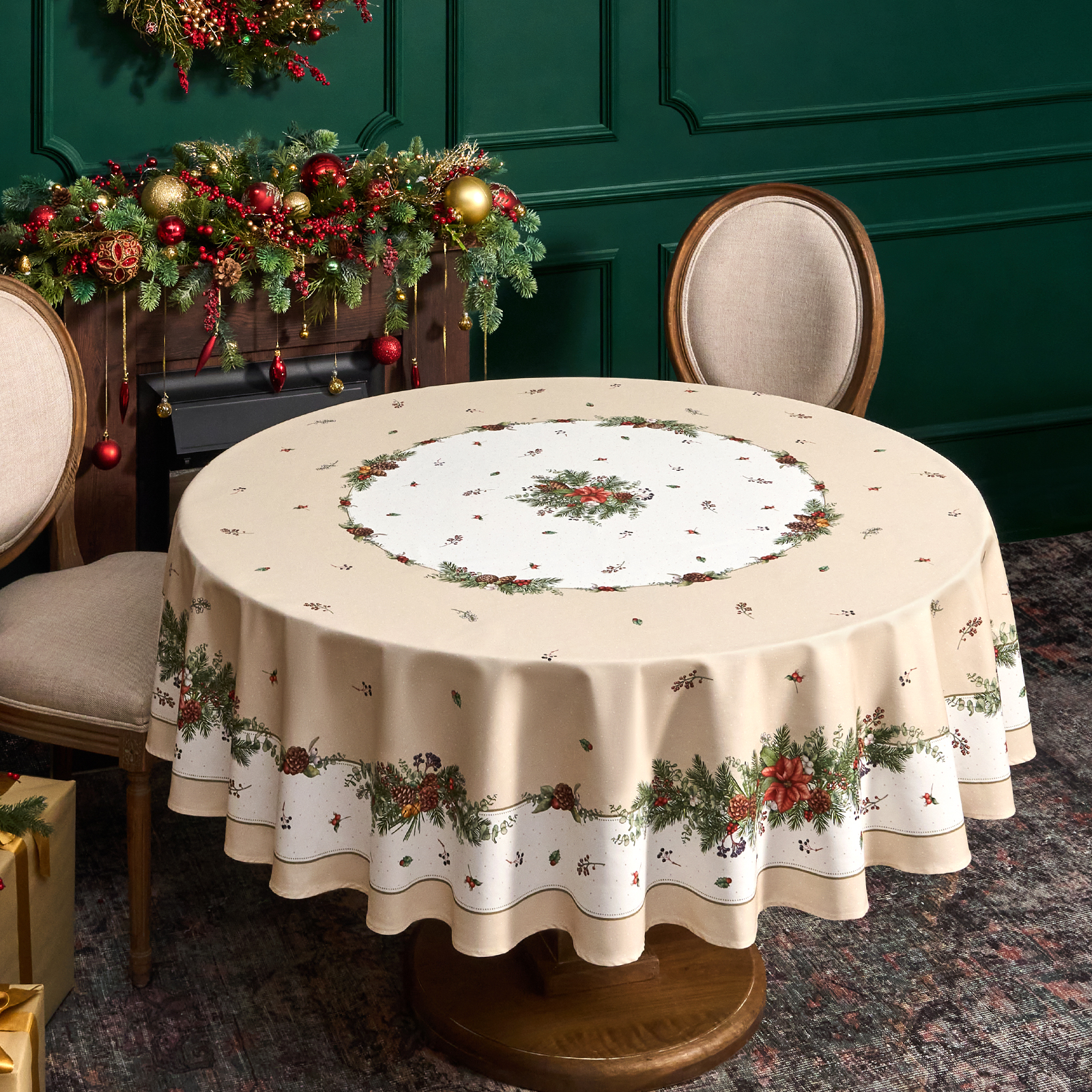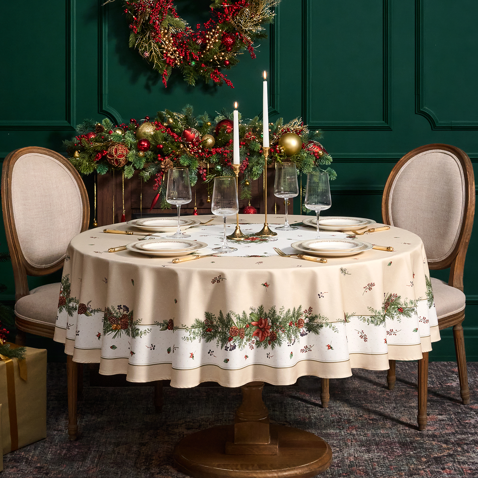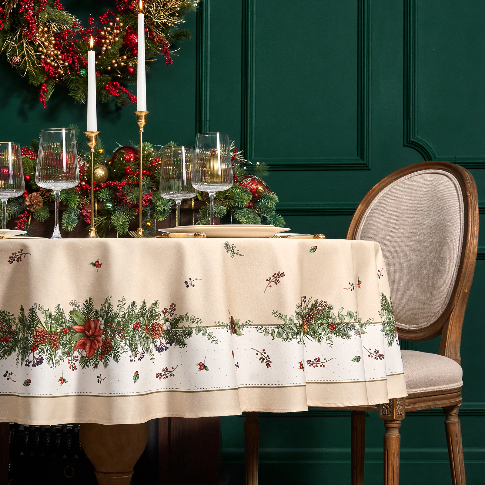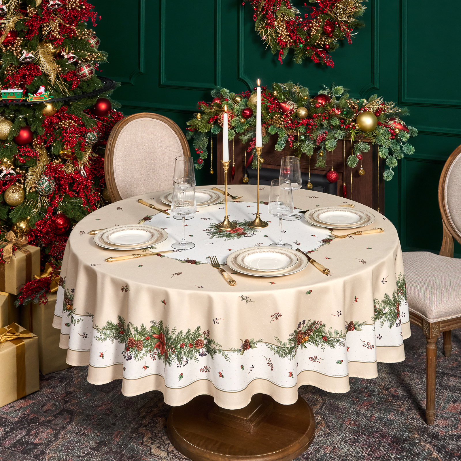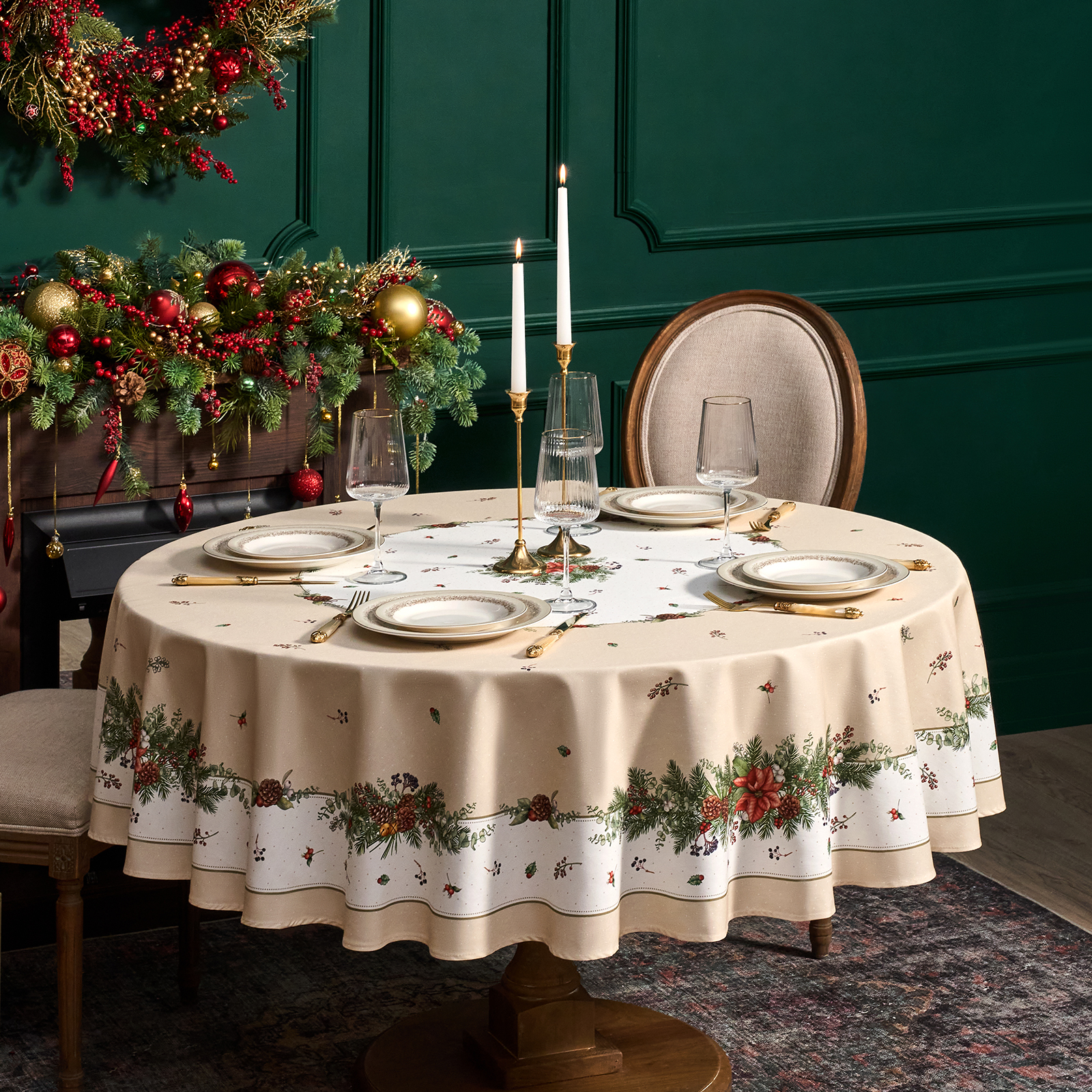 Коллекция Celebration имеет универсальный красивый зимний дизайн с шишками, веточками ели и пуансеттией. Она подойдет как для празднования Нового года и Рождества, так и для повседневного использования и декора, а специальная пропитка избавит вас от хлопот с отстированием пятен после застолья.