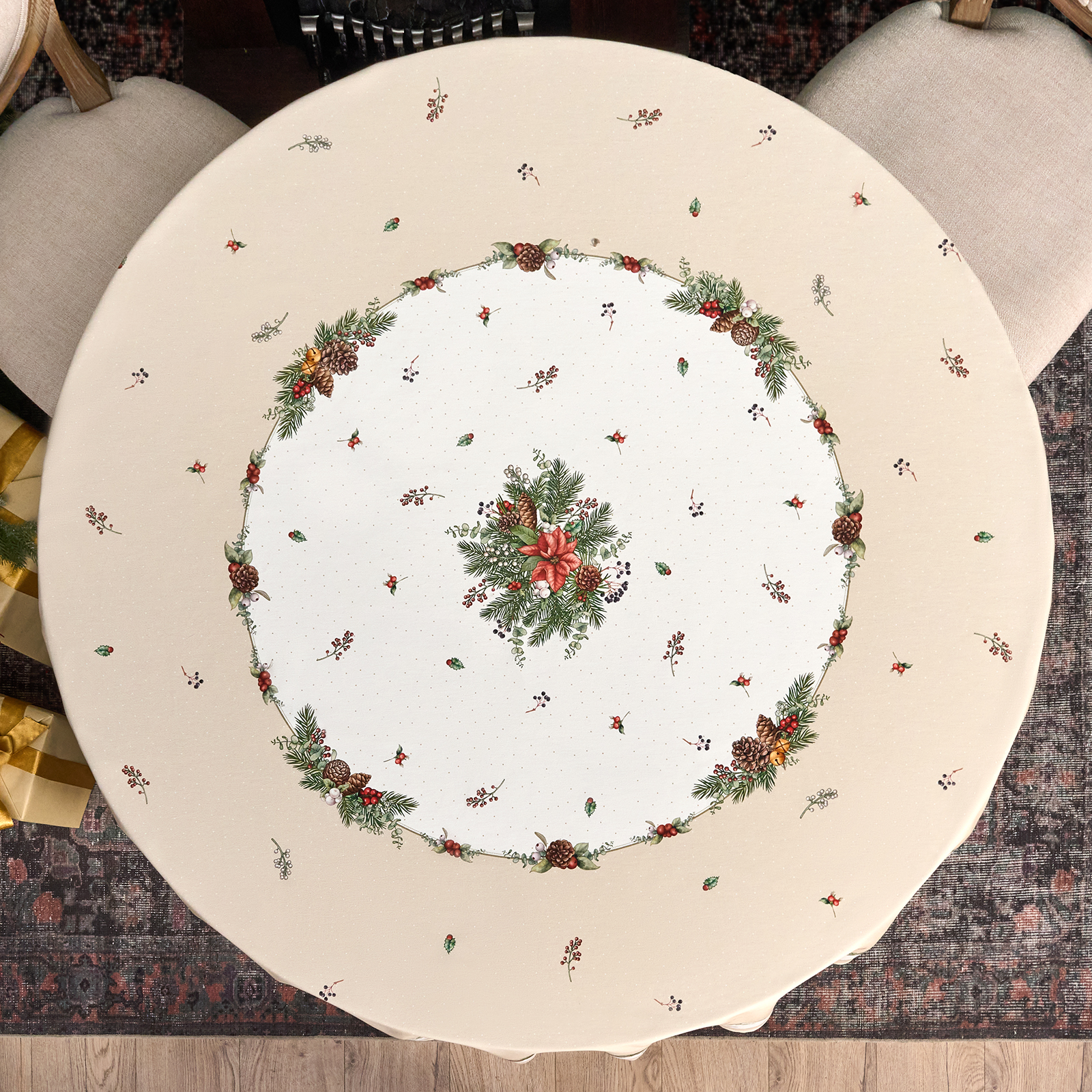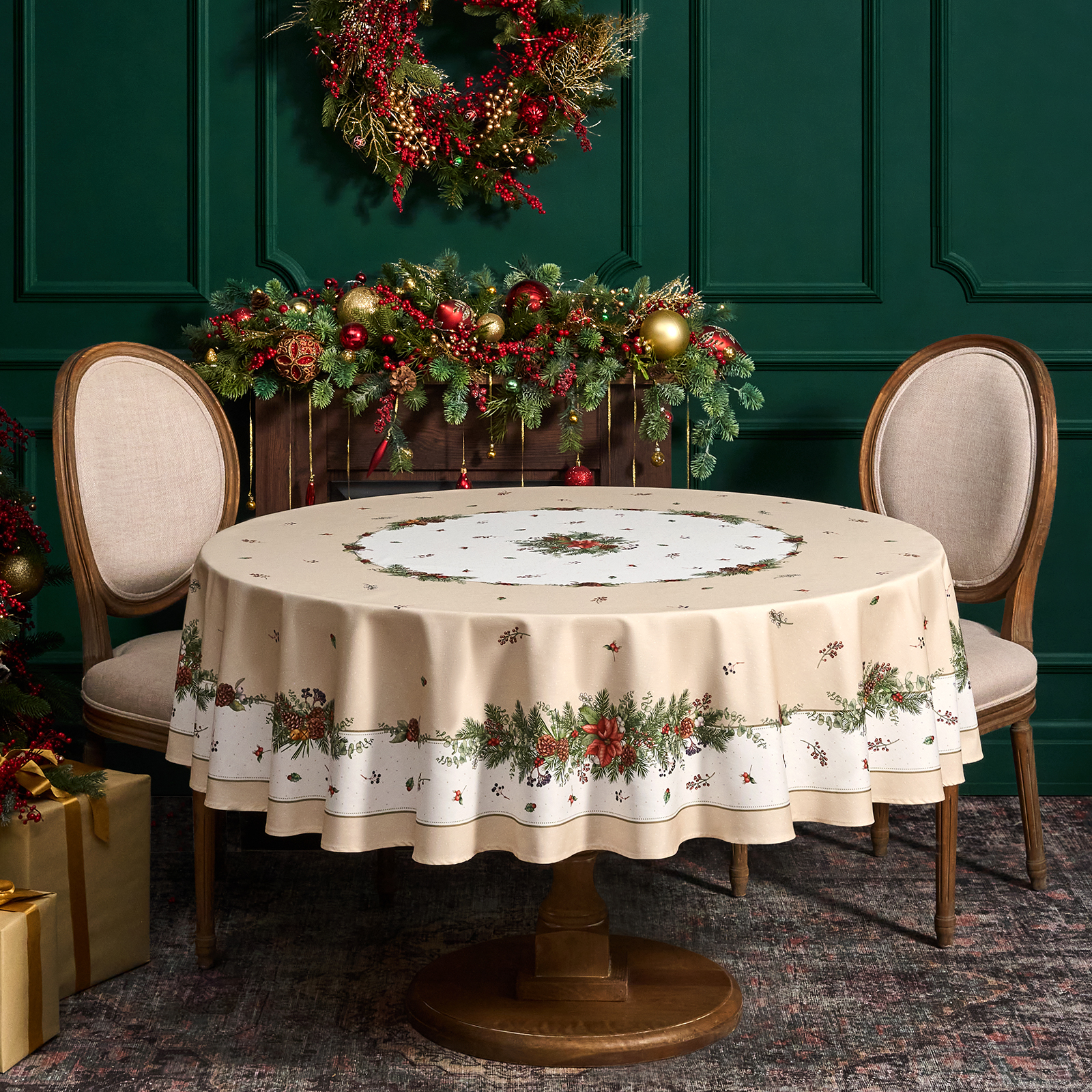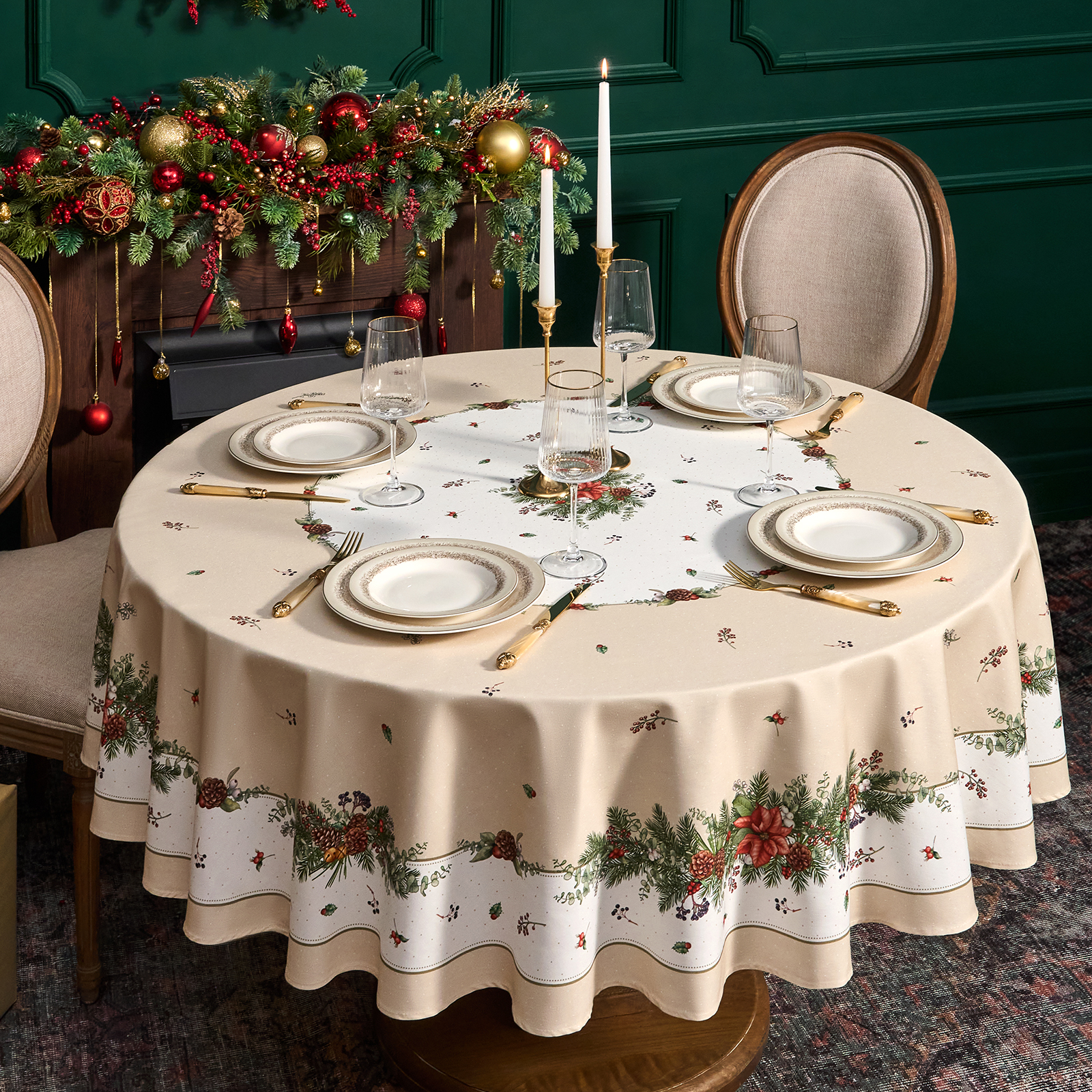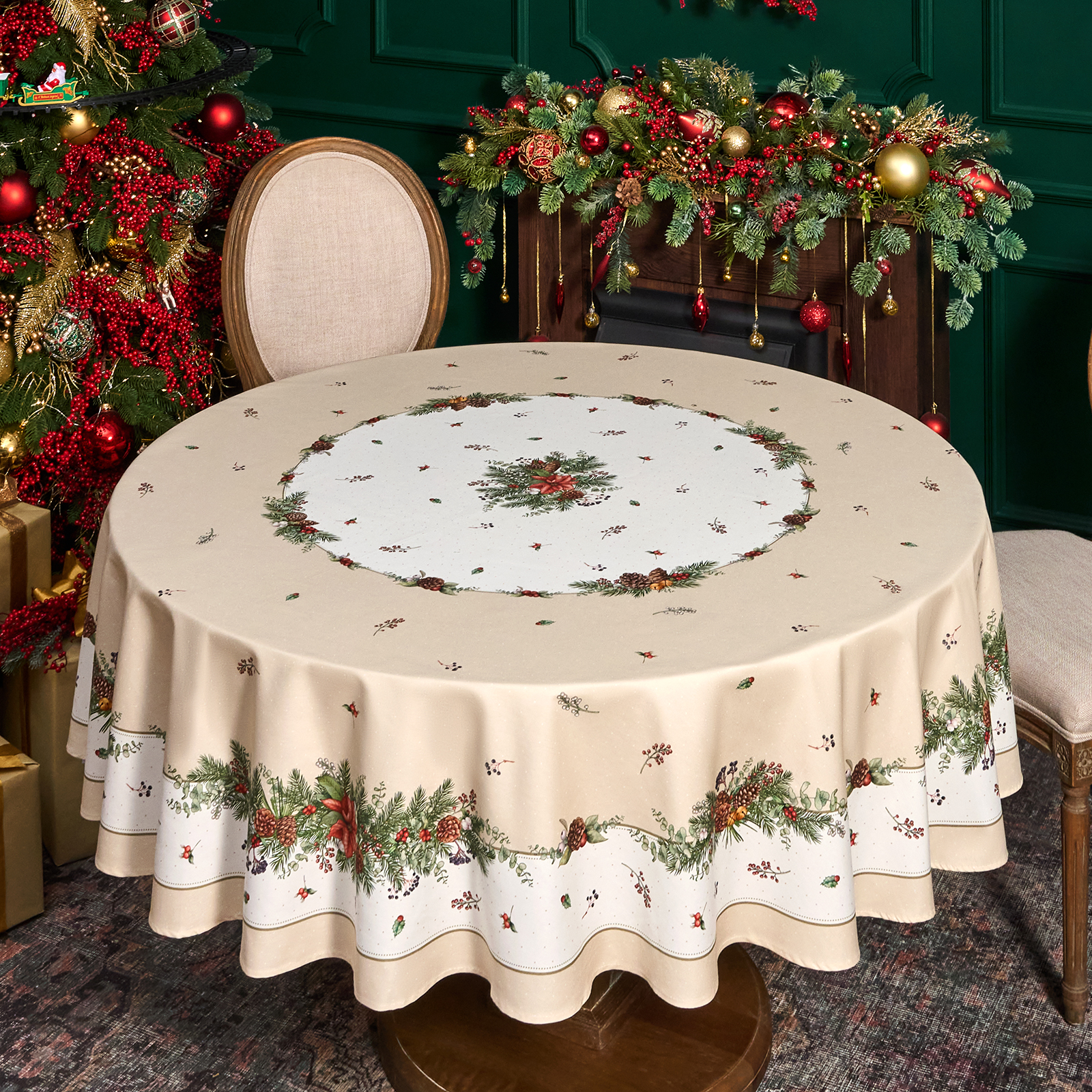 Коллекция Celebration имеет универсальный красивый зимний дизайн с шишками, веточками ели и пуансеттией. Она подойдет как для празднования Нового года и Рождества, так и для повседневного использования и декора, а специальная пропитка избавит вас от хлопот с отстированием пятен после застолья.