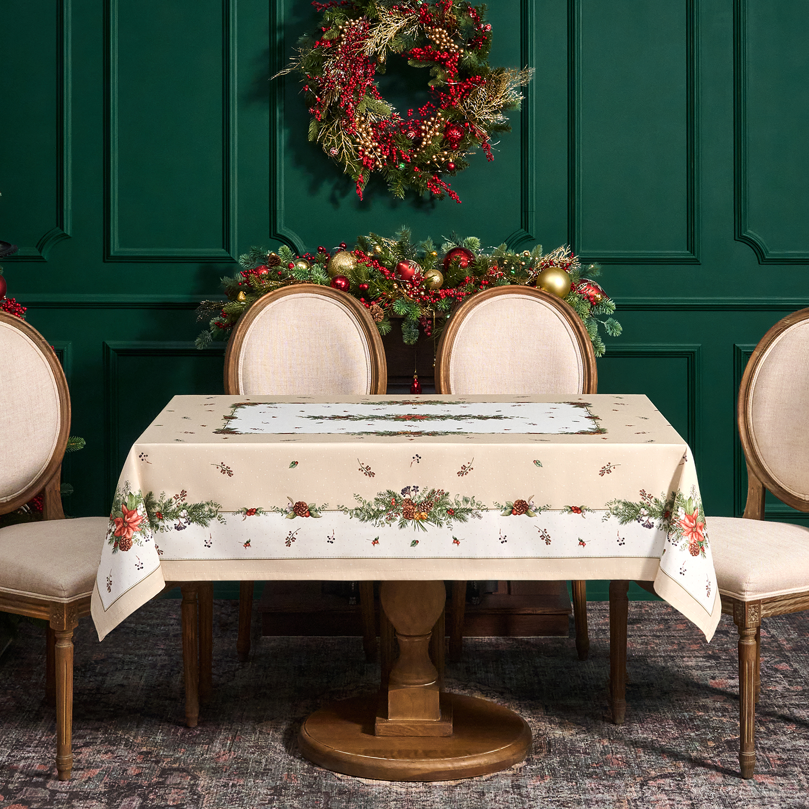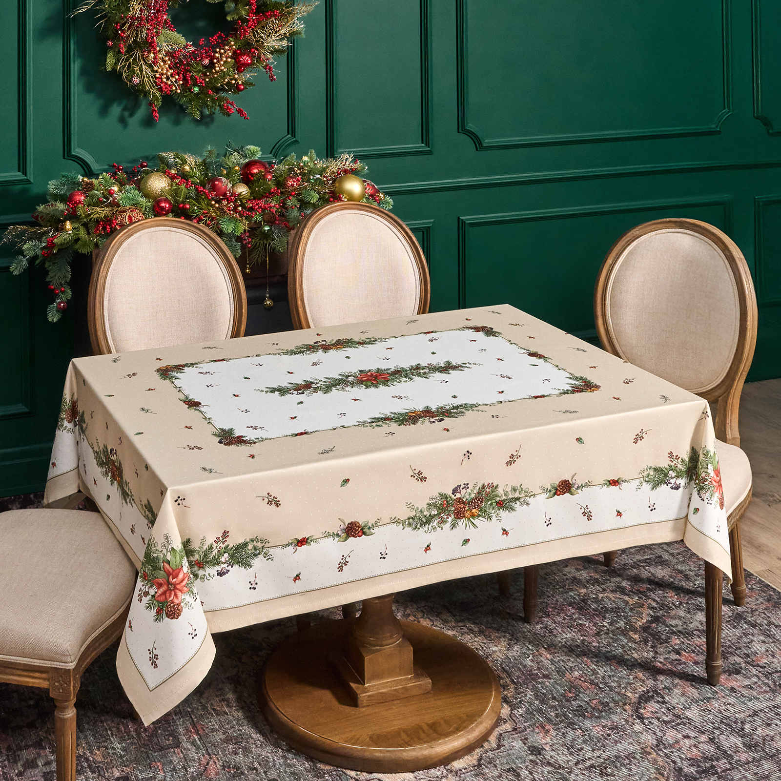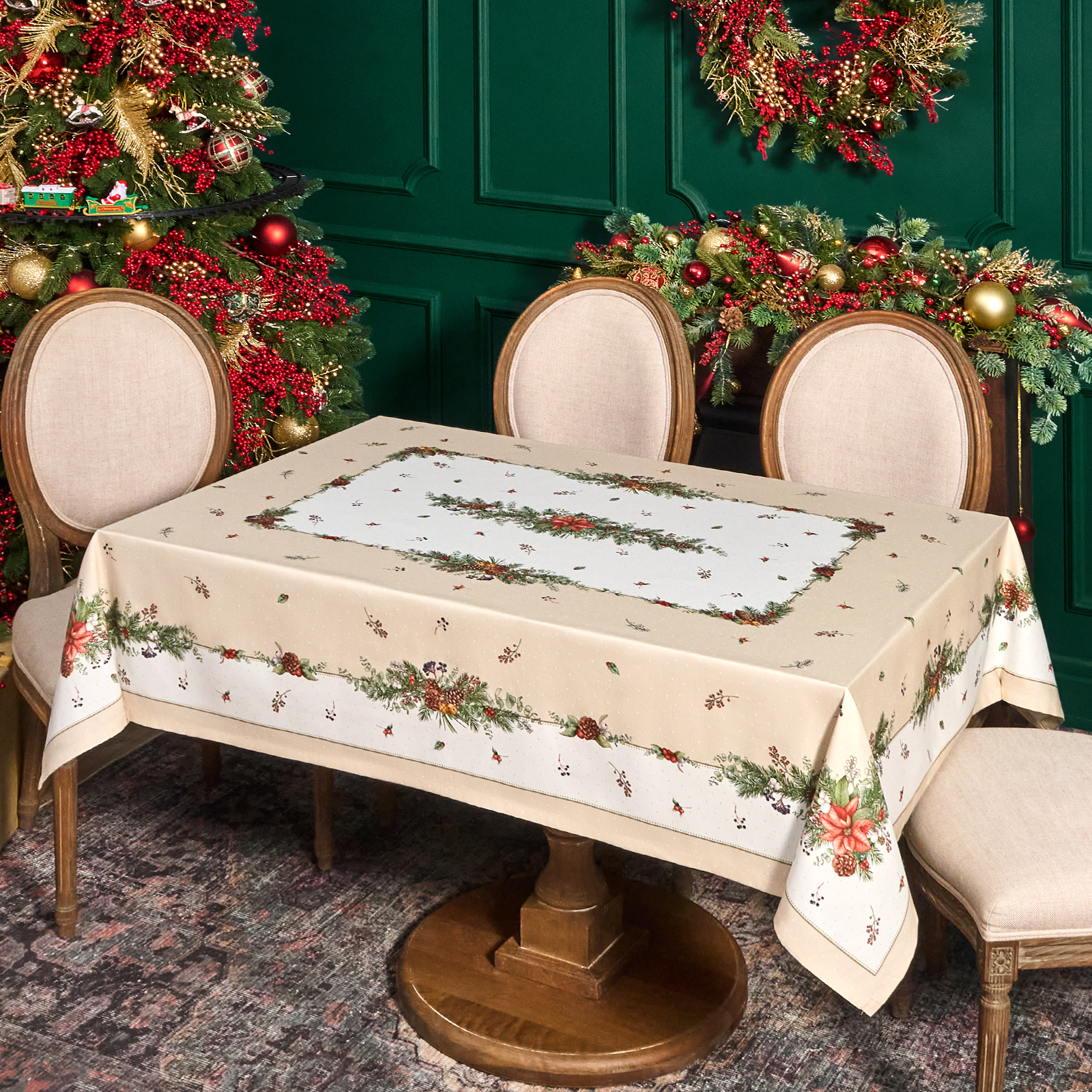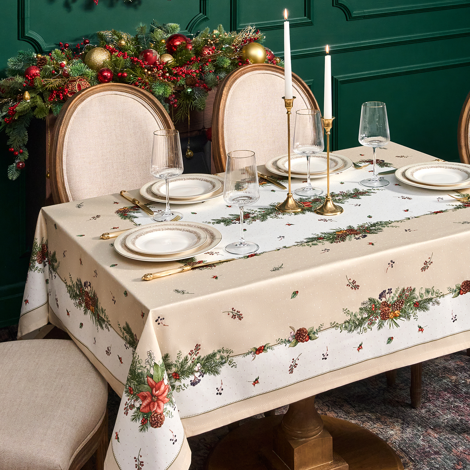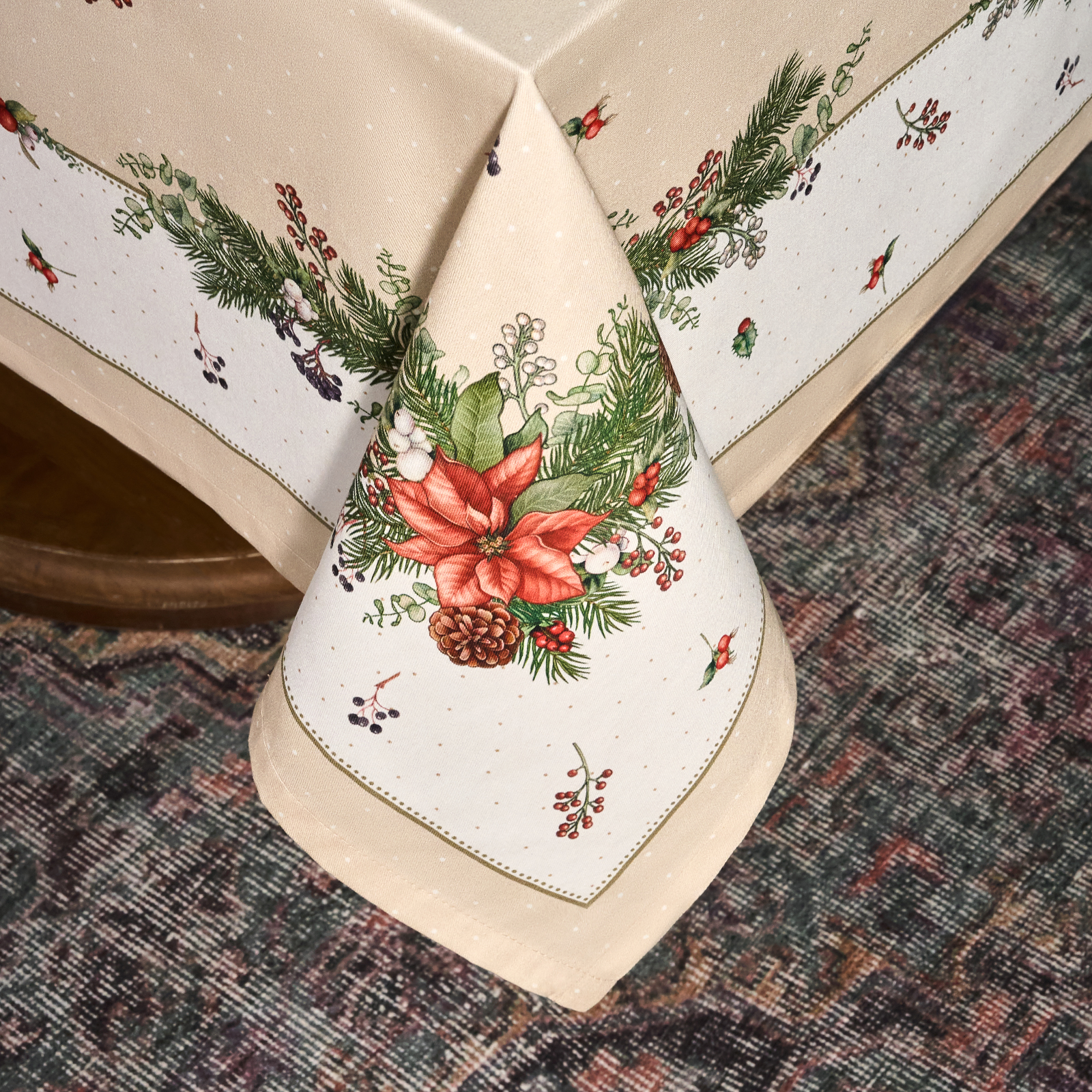 Скатерть выполнена из высококачественного 100% хлопка с саржевым переплетением Твил. Эта ткань не заламывается и не мнется. Скатерть из твила выглядит аккуратно и элегантно и имеет плотность 190 г\м2. Такая плотность ткани позволяет стирать скатерть, гладить и сушить более 100 раз без потери качества. Скатерть имеет дополнительную водоотталкивающую пропитку, которая защитит её от разлитой жидкости. Цифровая печать принта выполнена по всем сторонам скатерти и с любой стороны будет выглядеть красиво и четко, каждый штрих детально прорисован во всём многообразии оттенков. Коллекция Celebration имеет универсальный красивый зимний дизайн с шишками, веточками ели и пуансеттией. Она подойдет как для празднования Нового года, Рождества, так и для повседневного использования и декора, а специальная пропитка избавит вас от хлопот с отстированием пятен после застолья. Размер скатерти 140*180 см отлично подойдет для прямоугольных столов размером 100*120 см.