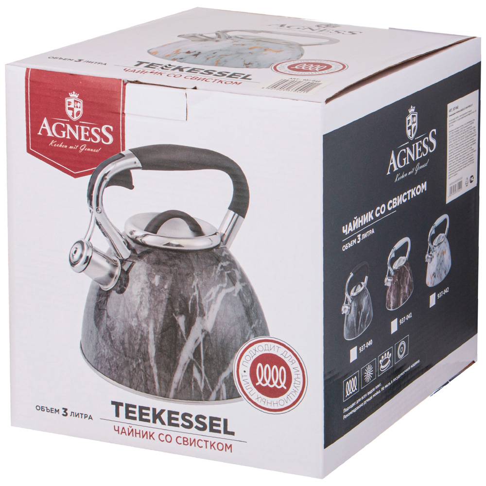 • Благодаря внешнее жаропрочному покрытию и стильному дизайну чайник AGNESS украсит любую кухню