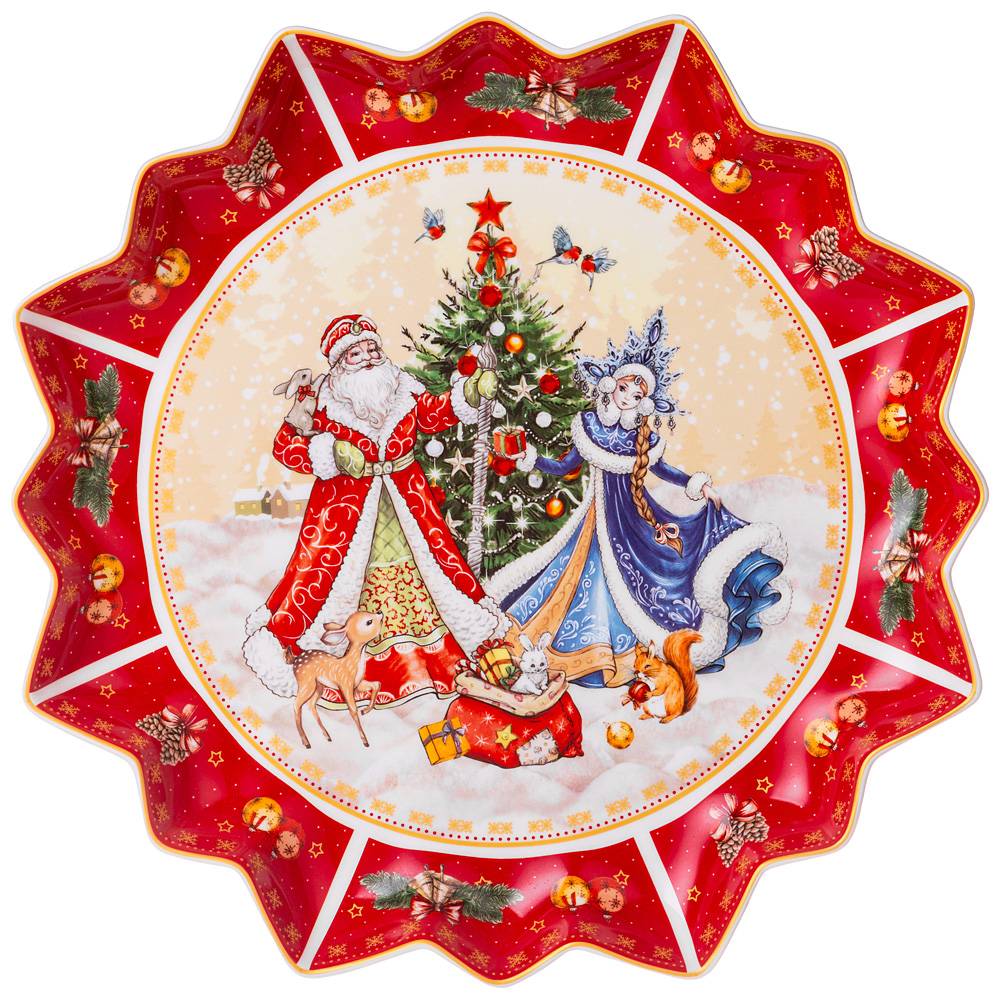 БЛЮДО LEFARD "ДЕД МОРОЗ И СНЕГУРОЧКА" 38 СМ КРАСНОЕ (КОР=8ШТ.)