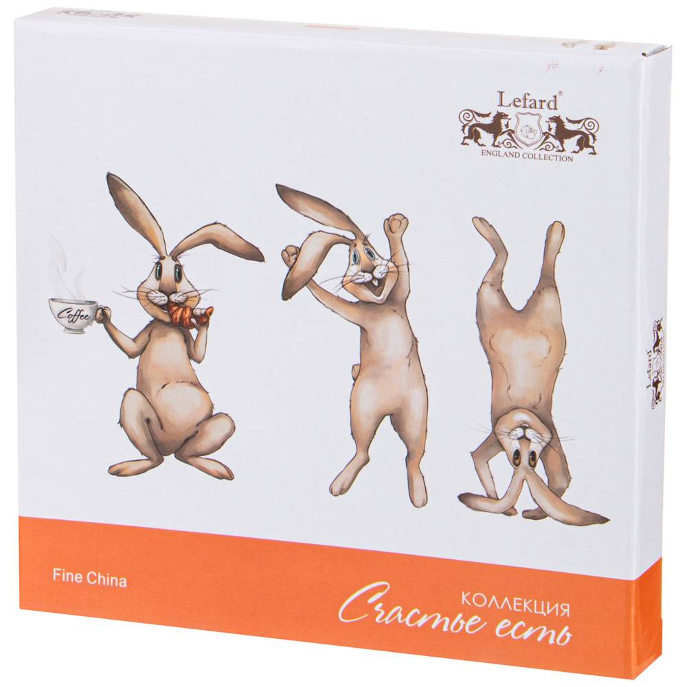 Всем, кто полон энергии и задора, любит кофе и следит за фигурой посвящается коллекция «Счастье есть» от ТМ LEFARD. Это лучший подарок детям, родителям, друзьям и коллегам. Поднимайте настроение вместе с веселыми кроликами, верьте, Счастье есть! Кружки, чайные пары, стаканы с силиконовыми крышками, банки для кофе, тарелки и салатники выполнены на тонкостенном высококачественном фарфоре. Удобные формы и размеры. Красочная упаковка. Продукция прошла сертификацию, безопасна для контакта с пищевыми продуктами. Можно использовать в микроволновой печи, мыть в посудомоечной машине.