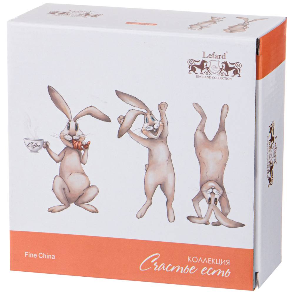 Всем, кто полон энергии и задора, любит кофе и следит за фигурой посвящается коллекция «Счастье есть» от ТМ LEFARD. Это лучший подарок детям, родителям, друзьям и коллегам. Поднимайте настроение вместе с веселыми кроликами, верьте, Счастье есть! Кружки, чайные пары, стаканы с силиконовыми крышками, банки для кофе, тарелки и салатники выполнены на тонкостенном высококачественном фарфоре. Удобные формы и размеры. Красочная упаковка. Продукция прошла сертификацию, безопасна для контакта с пищевыми продуктами. Можно использовать в микроволновой печи, мыть в посудомоечной машине.