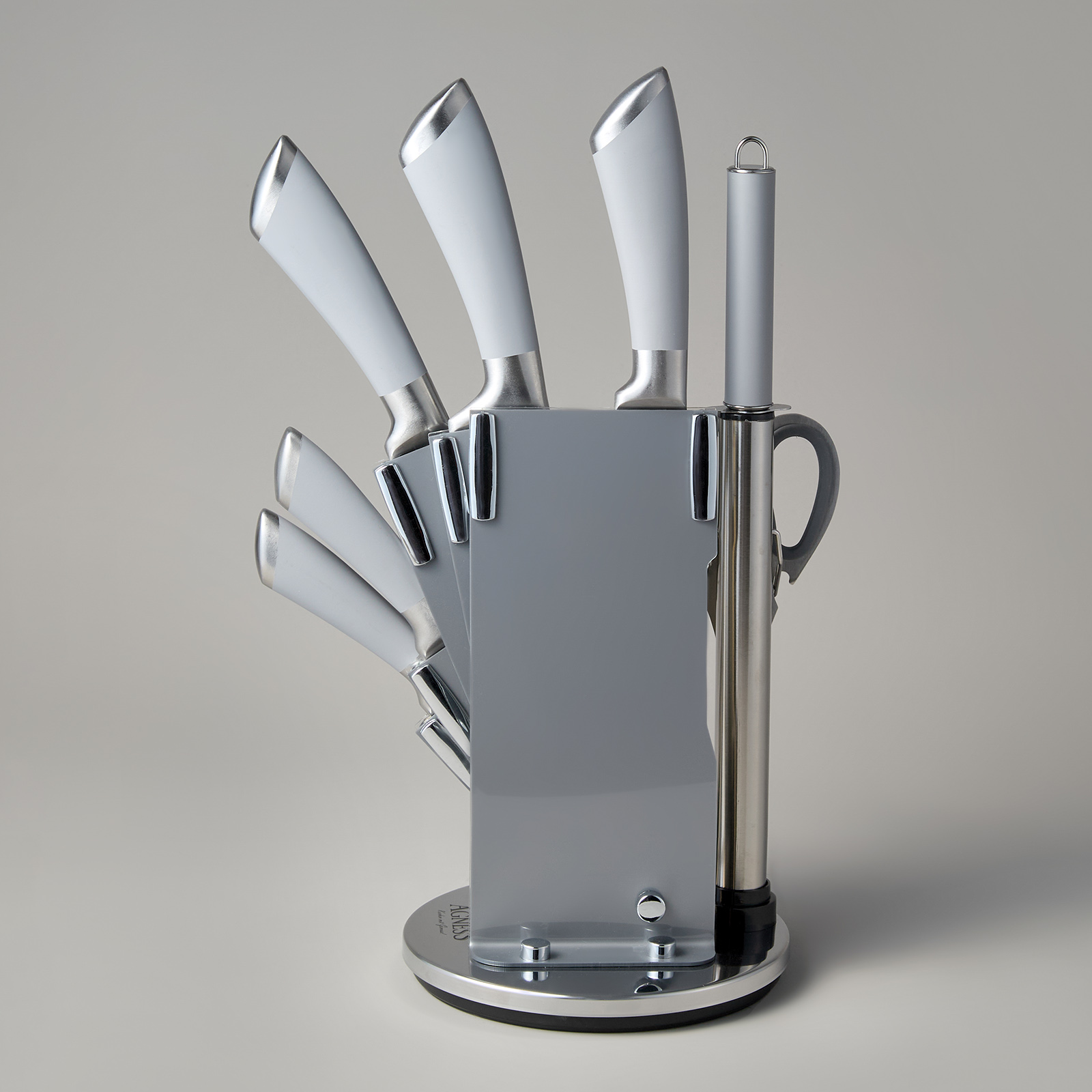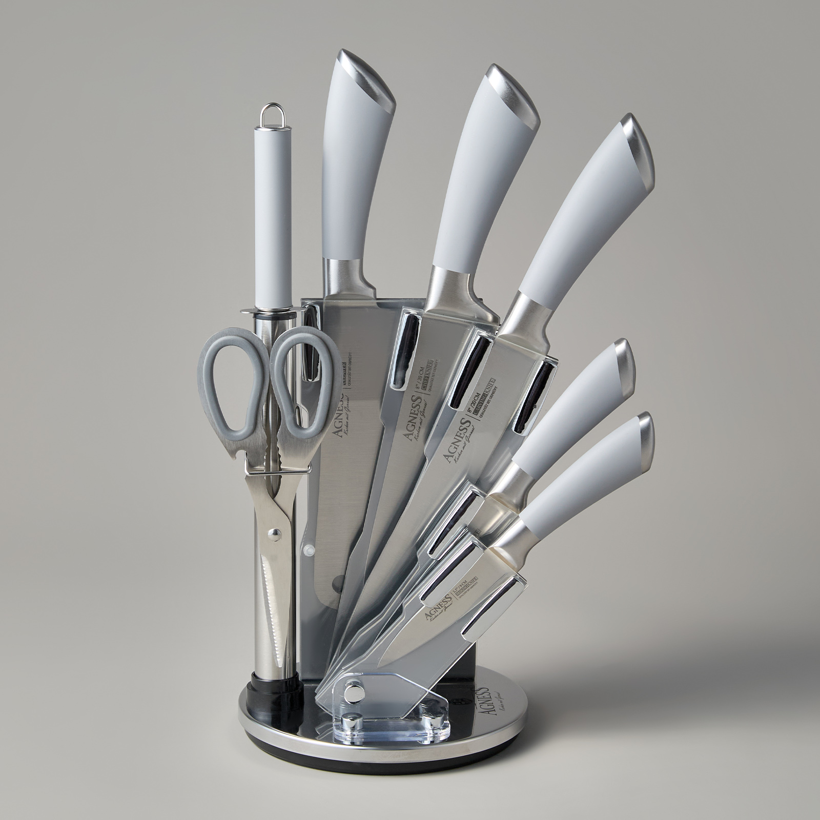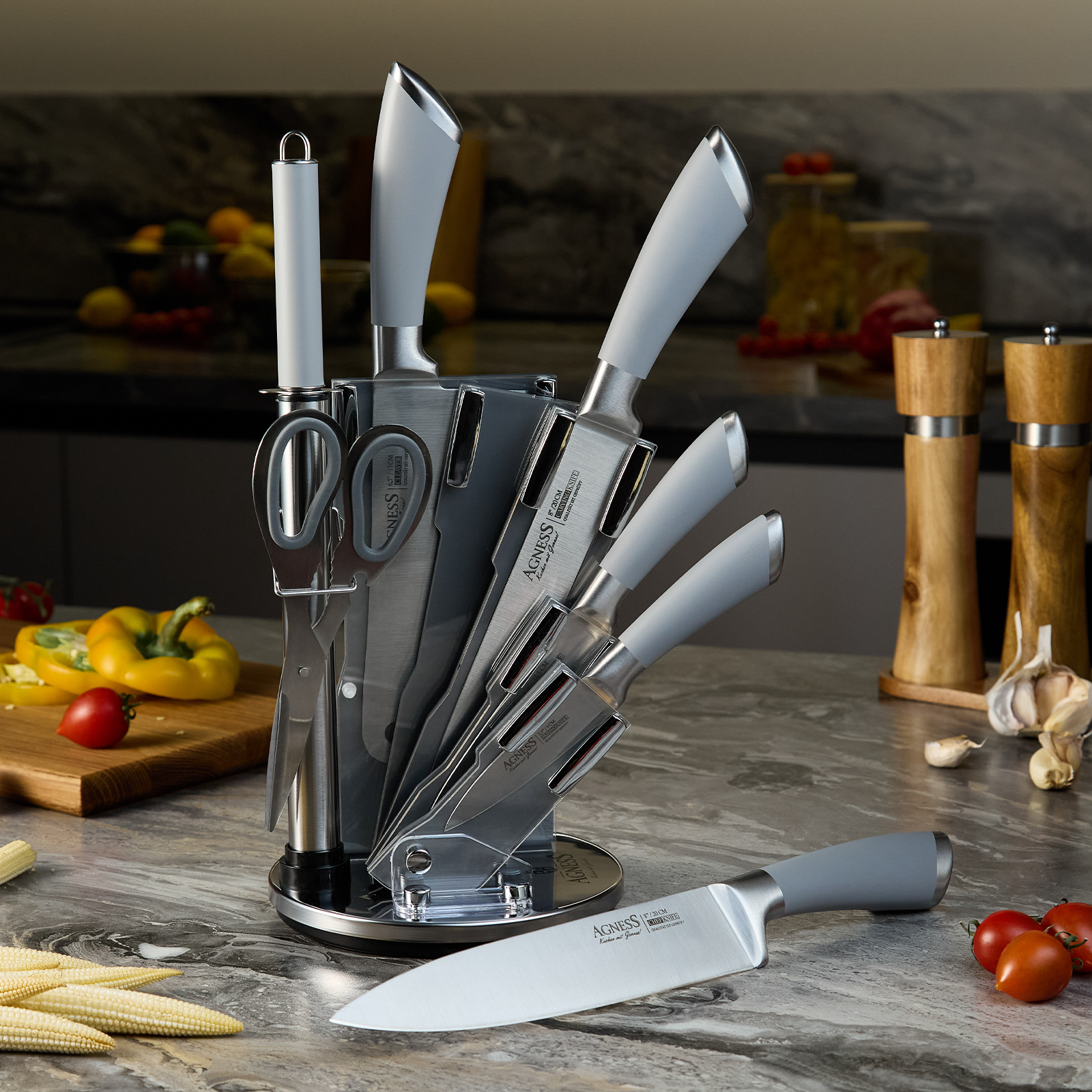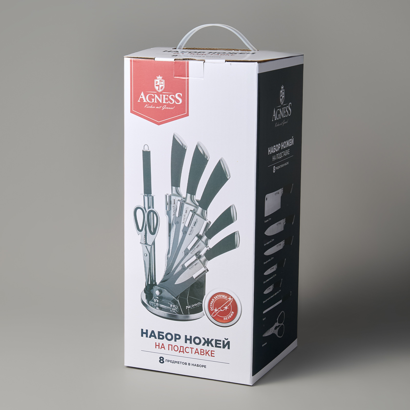 НАБОР НОЖЕЙ AGNESS НЖС НА ПЛАСТИКОВОЙ ВРАЩАЮЩЕЙСЯ ПОДСТАВКЕ 8 ПР.