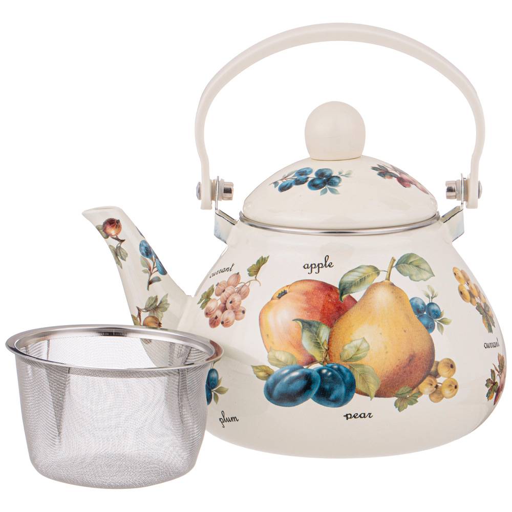 ЧАЙНИК AGNESS ЭМАЛИРОВАННЫ СО СЪЕМНЫМ ФИЛЬТРОМ ИЗ НЖС, СЕРИЯ "ФРУКТЫ" 1,3 Л