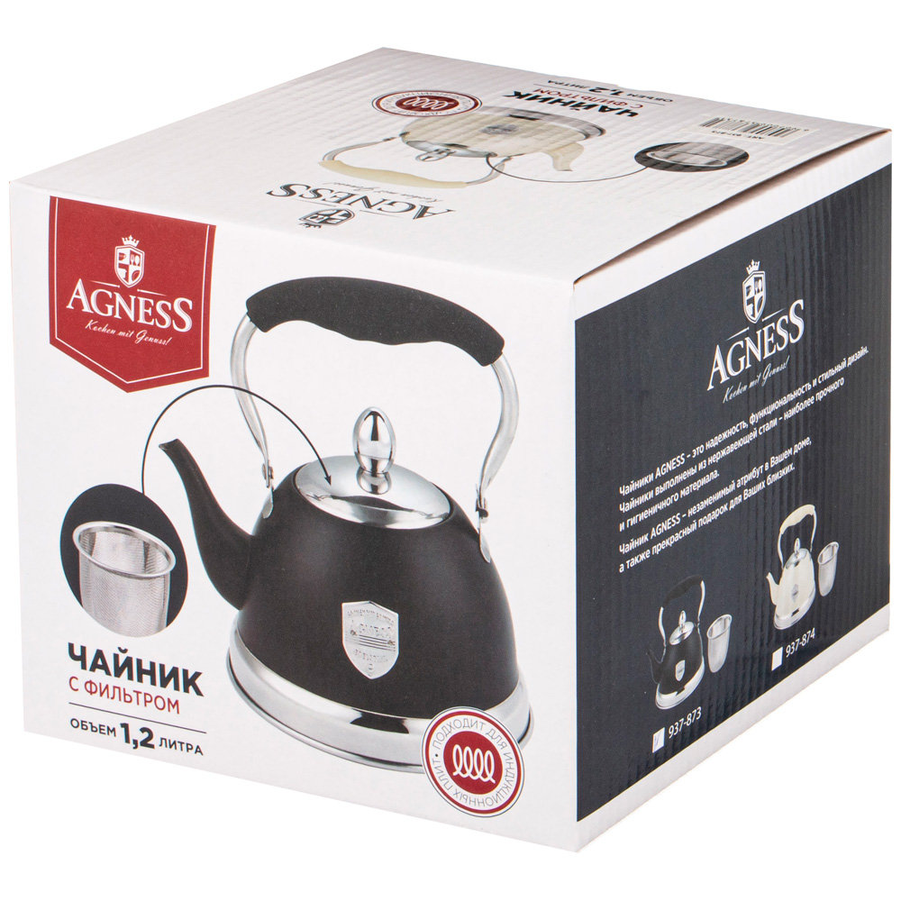 • Благодаря внешнее жаропрочному покрытию и стильному дизайну чайник AGNESS украсит любую кухню