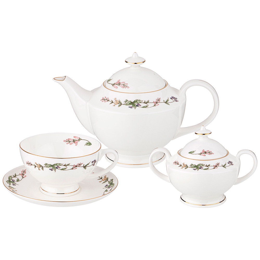 Комплектность: чайник 1200 мл, сахарница 300 мл, чашка 250 мл 6 шт., блюдце 6 шт.