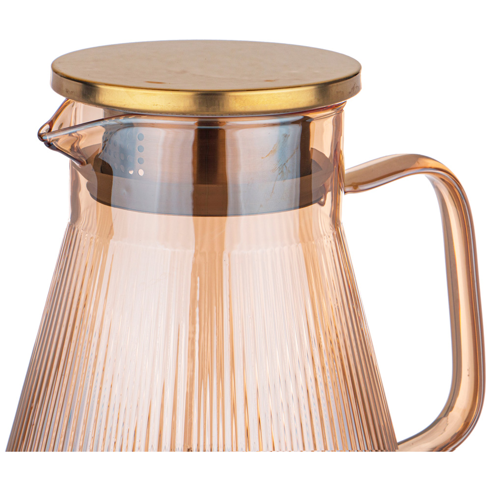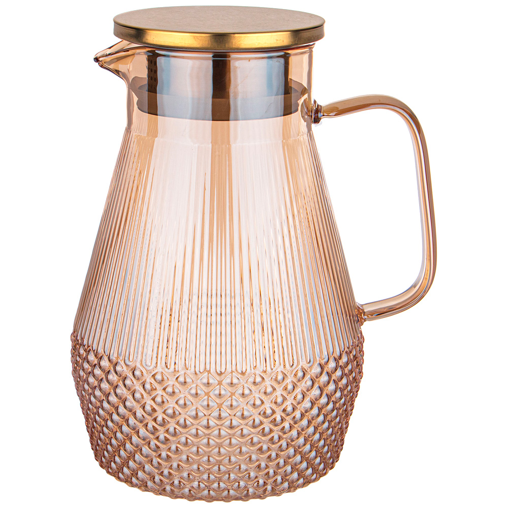 Кувшин оснащен удобной ручкой и плотно закрывающейся крышкой.