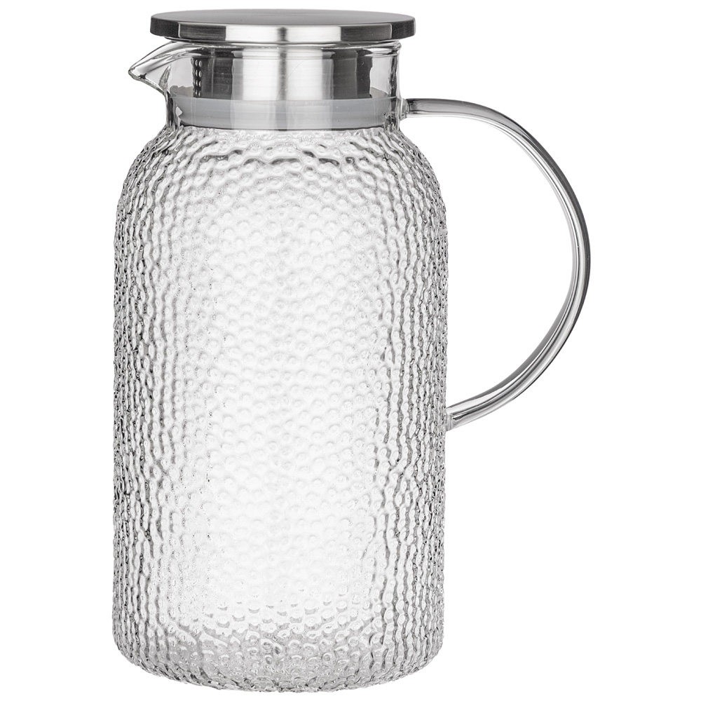 Кувшин оснащен удобной ручкой и плотно закрывающейся крышкой.
