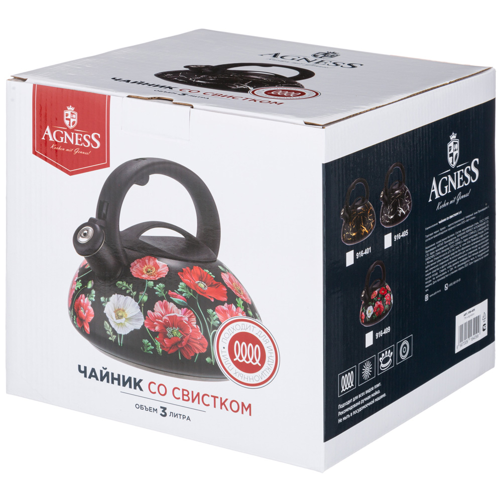 ЧАЙНИК AGNESS СО СВИСТКОМ 3 Л, СЕРИЯ "FANTASY ", ИНДУКЦИОННОЕ КАПСУЛЬНОЕ ДНО