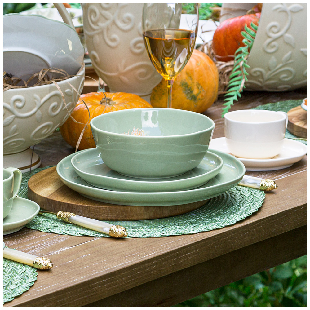 Ультрамодная коллекция TRENDY ТМ LEFARD предлагает свежую цветовую гамму, неординарные «мятые» формы и отличное качество упрочненного фарфора. В коллекции два теплых натуральных цвета – темного зеленого чая или спаржи и кремового или топленого молока, которые прекрасно комбинируются между собой и коллекцией VILLAGE.