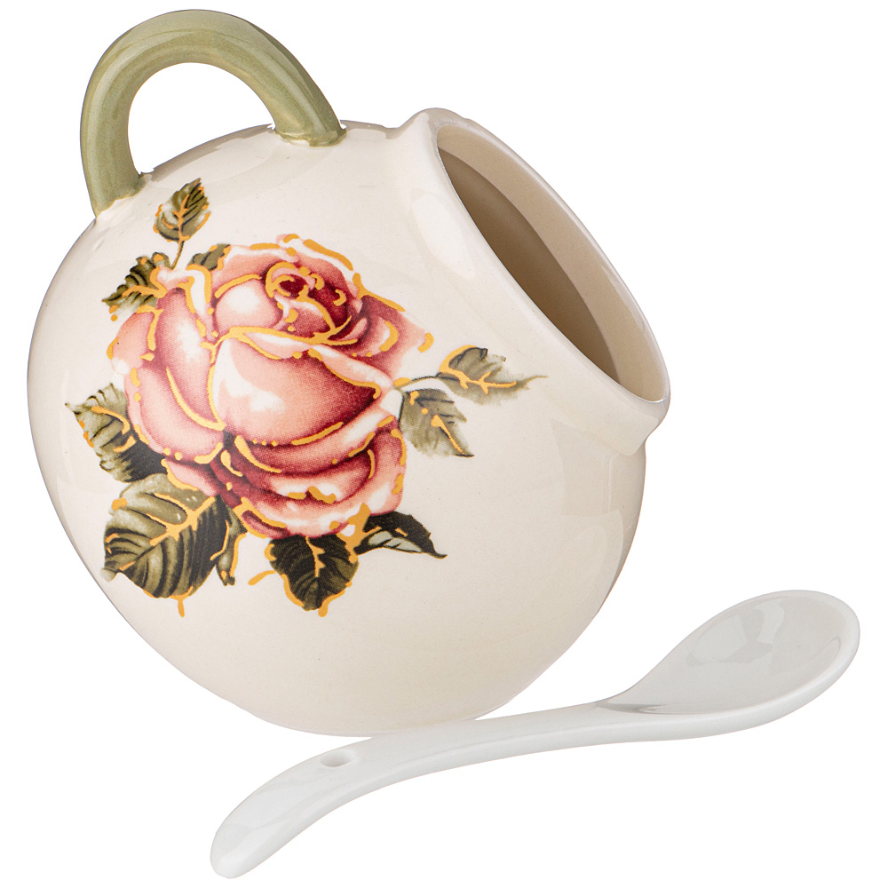 СОЛОНКА С ЛОЖКОЙ "КОРЕЙСКАЯ РОЗА" 9,5*9,5 СМ. ВЫСОТА=10 СМ. / 170 МЛ. (КОР=48ШТ.)