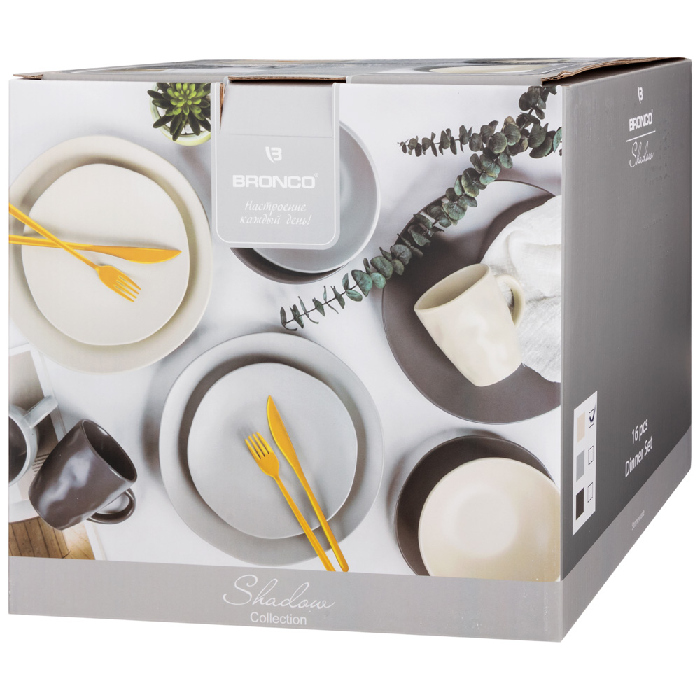 НАБОР ПОСУДЫ ОБЕДЕННЫЙ BRONCO "SHADOW" НА 4 ПЕР. 16 ПР. СВЕТЛО-СЕРЫЙ (КОР=2НАБ.)