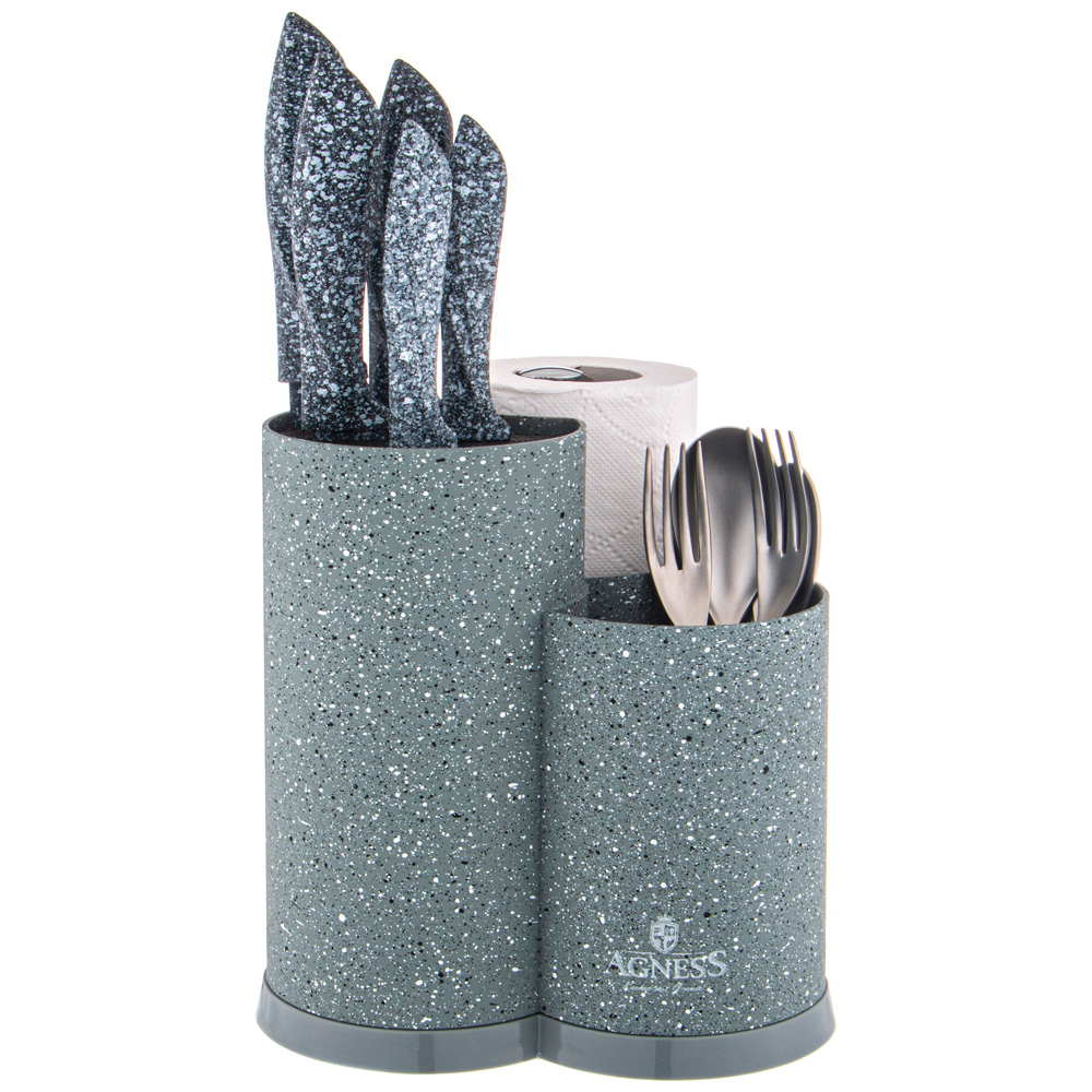 ПОДСТАВКА ДЛЯ НОЖЕЙ AGNESS УНИВЕРСАЛЬНАЯ C ДЕРЖАТЕЛЕМ ДЛЯ ПОЛОТЕНЕЦ, ВЫСОТА: 25*22*16СМ