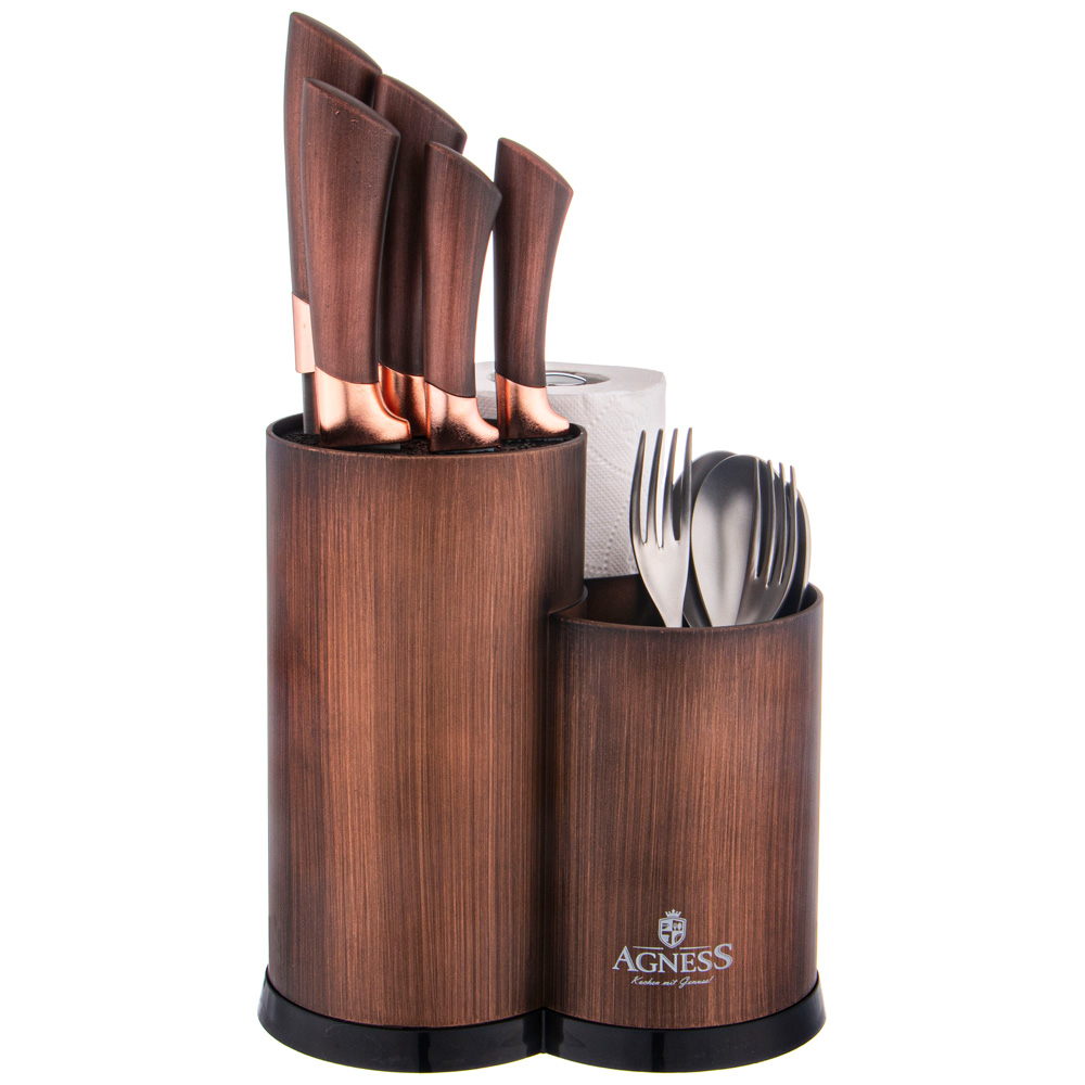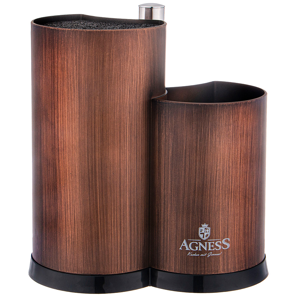 ПОДСТАВКА ДЛЯ НОЖЕЙ AGNESS УНИВЕРСАЛЬНАЯ C ДЕРЖАТЕЛЕМ ДЛЯ ПОЛОТЕНЕЦ, ВЫСОТА: 25*22*16СМ