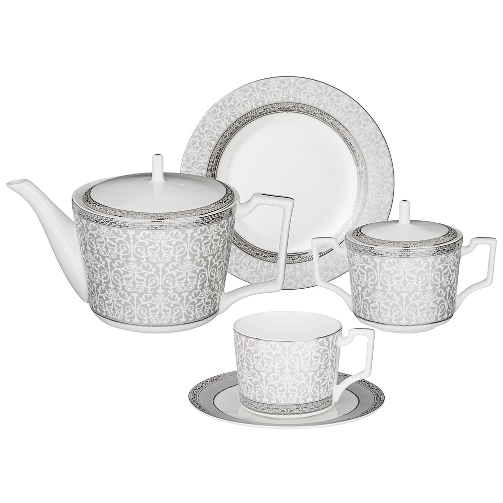 Комплектность: чайник 1000 мл - 1 шт., сахарница 300 мл - 1 шт., чашка 250 мл - 6 шт., блюдце 15,5 см - 6 шт., тарелка пирожковая 18 см - 6 шт.