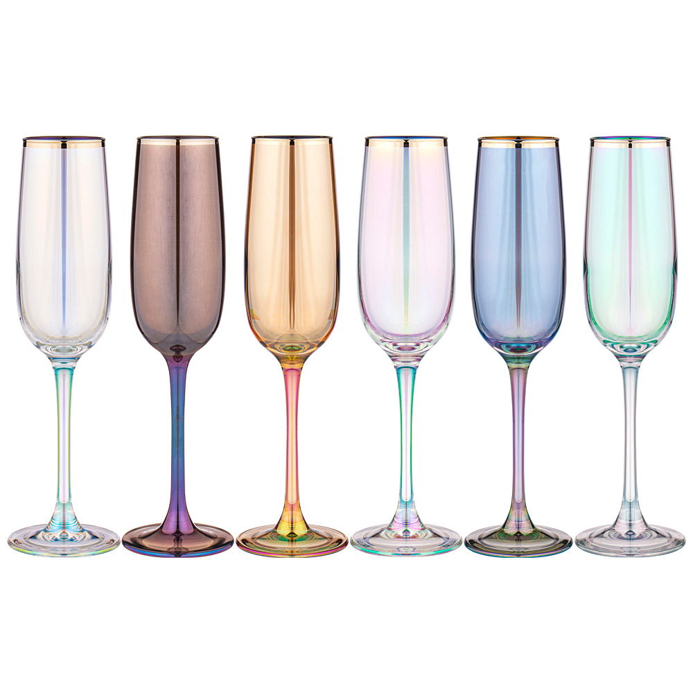 Этот изысканный набор бокалов для шампанского создан, чтобы превратить каждый момент в яркое событие. Каждый бокал украшен неповторимым цветом и блестящей полосой, которая оживает при свете — словно капли радуги, добавляя праздничное настроение.