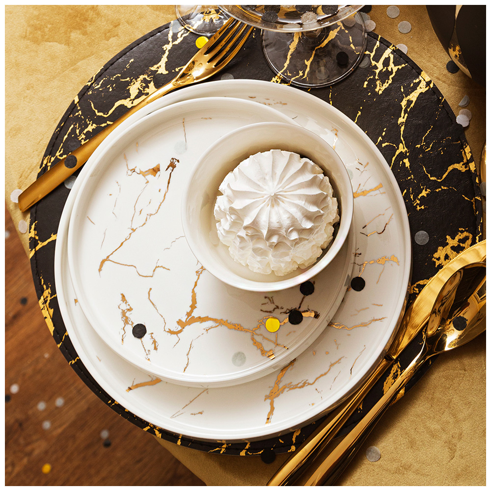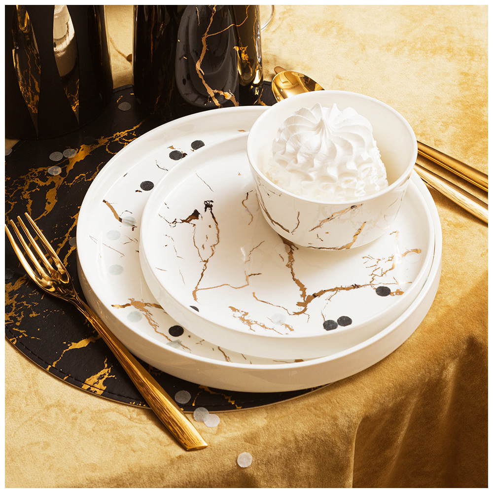 Коллекция "Fantasy" ТМ LEFARD - это модная сервировка стола и стильный кухонный интерьер в классическом белом с золотом цвете. Блюда и формы различных размеров, менажницы на бамбуковых подставках, банки, тарелки и салатники различного назначения, чайники, чайные пары и кружки выполнены из упрочненного фарфора. Четкие линии, сверкающее глянцевое покрытие. Вы и Ваш стол неотразим! Посуда прошла сертификацию. Безопасна для контакта с пищевыми продуктами. Можно использовать в микроволновой печи. Не рекомендуется мыть в посудомоечной машине.