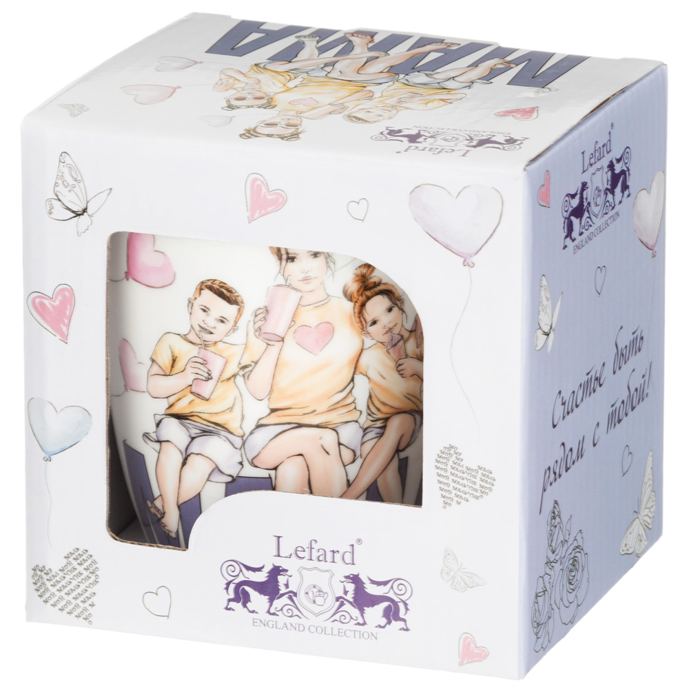 TM Lefard предлагает коллекцию кружек любимым мамам и детям. Изделия из белоснежного тонкого костяного фарфора с изящным эксклюзивным рисунком. Посуда прошла сертификацию. Безопасна для контакта с пищевыми продуктами. Удобная форма и комфортный объем. Яркая цветная упаковка. Можно смело использовать в микроволновой печи, мыть в посудомоечной машине.