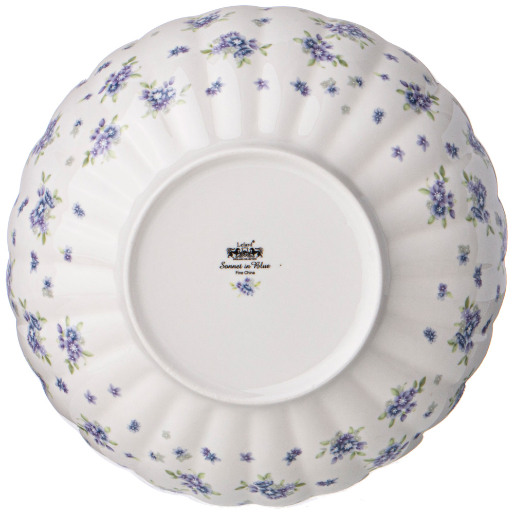 ТМ LEFARD коллекция "Sonnet in Blue" выполнена из тонкостенного упрочненного фарфора. Стильная форма, вместительный объем, модная синяя цветовая гамма, нежные цветочные букетики, отделка золотом - все это делает коллекцию неотразимой и очень привлекательной. Форма и цвет посуды способны оказать магическое действие на всех, кто находится за столом. В произведениях искусства синий — это цвет ночи и тени, а значит, идеальный цвет для тайны. Это прекрасный подарок, символизирует спокойствие и безмятежность. Нельзя ставить в микроволновую печь, не рекомендуется мыть в посудомоечной машине. Комплектность: тарелка обеденная 25,5 см - 6 шт., тарелка закусочная 20,5 см - 6 шт., салатник-тарелка суповая 18*6 см 900 мл - 6 шт., салатник 23 * 6,5 см 1500 мл - 1 шт., салатник 11,5 * 5,5 см 300 мл - 2 шт., блюдо овальное 25,5 см - 1 шт., блюдо овальное 35,5 см - 1 шт.