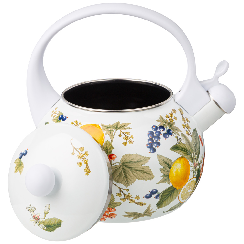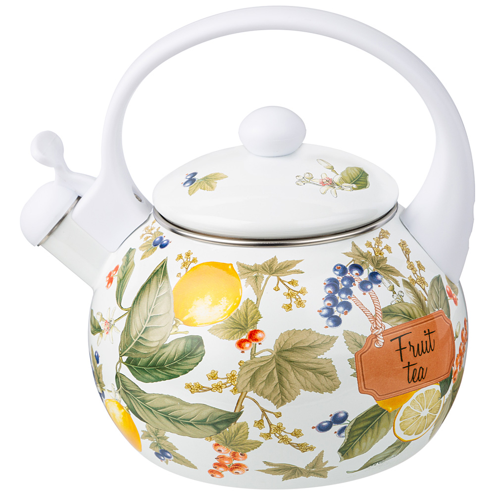 ЧАЙНИК AGNESS ЭМАЛИРОВАННЫЙ СО СВИСТКОМ СЕРИЯ "ФРУКТОВАЯ КОРЗИНА", 2,2Л, ИНДУКЦИОННОЕ ДНО
