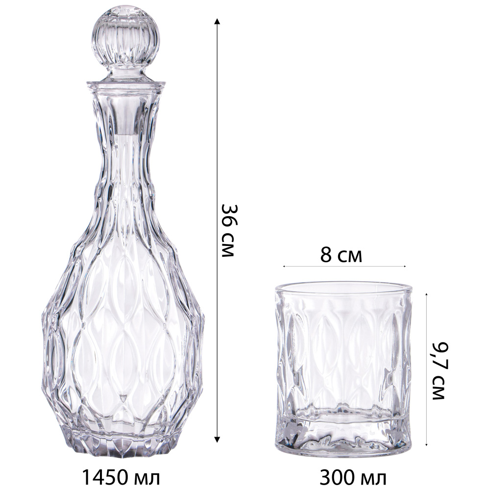 НАБОР ШТОФ И 2 СТАКАНА, 12X36 СМ 1400 МЛ